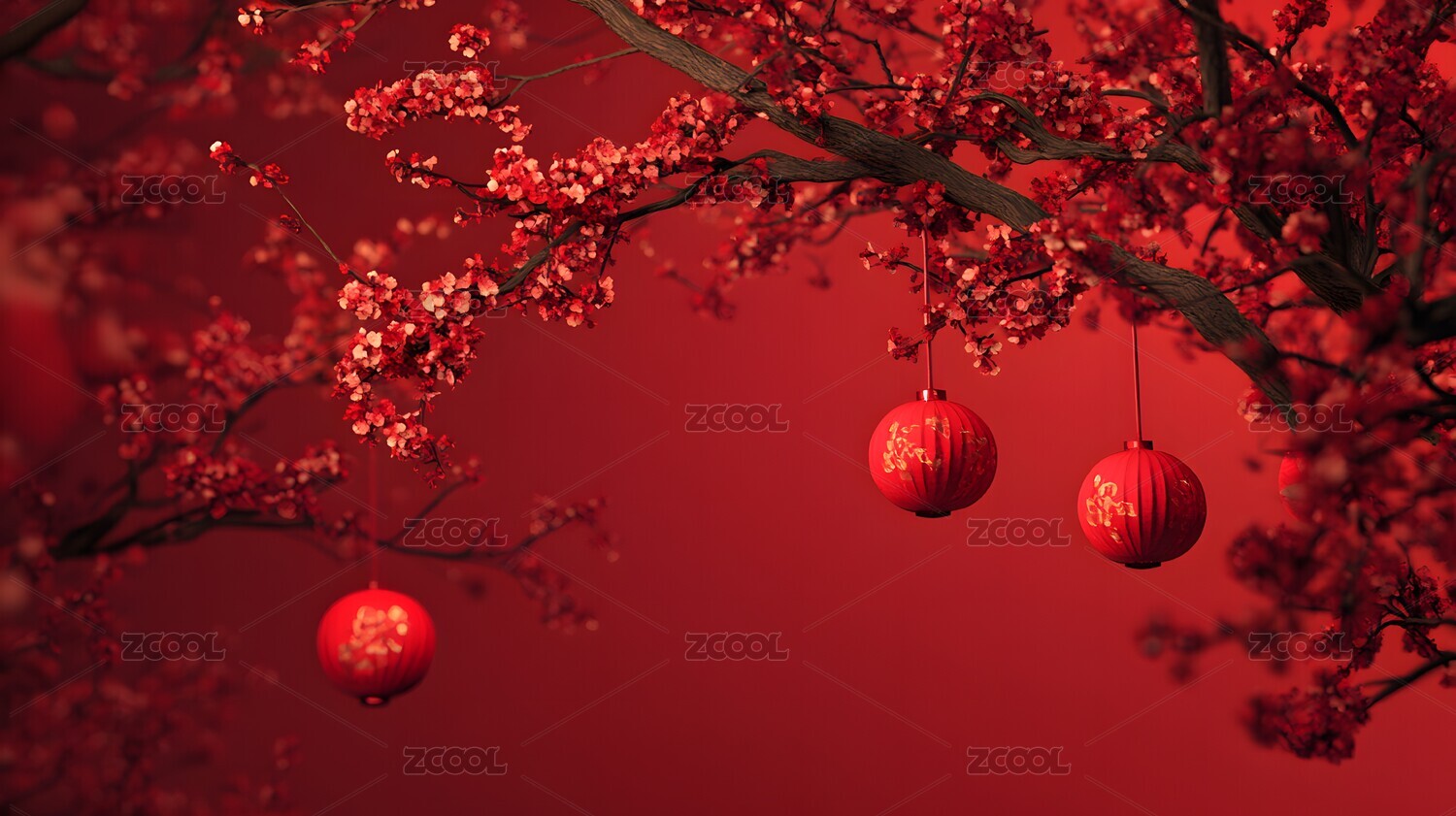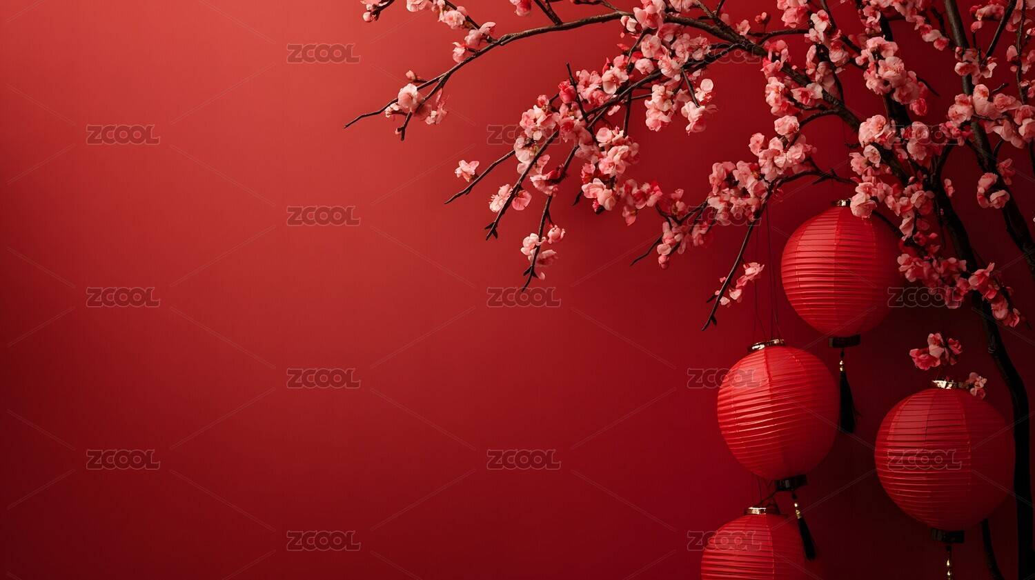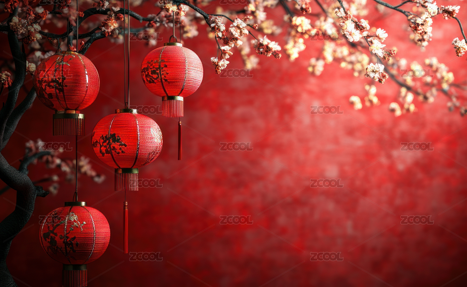 中国新年红灯笼与梅花