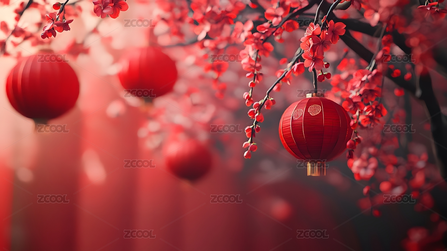 春节灯笼与梅花
