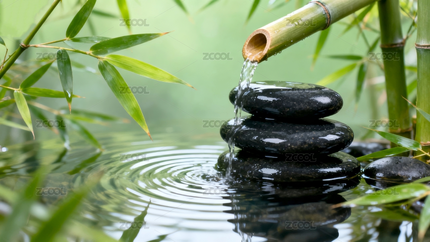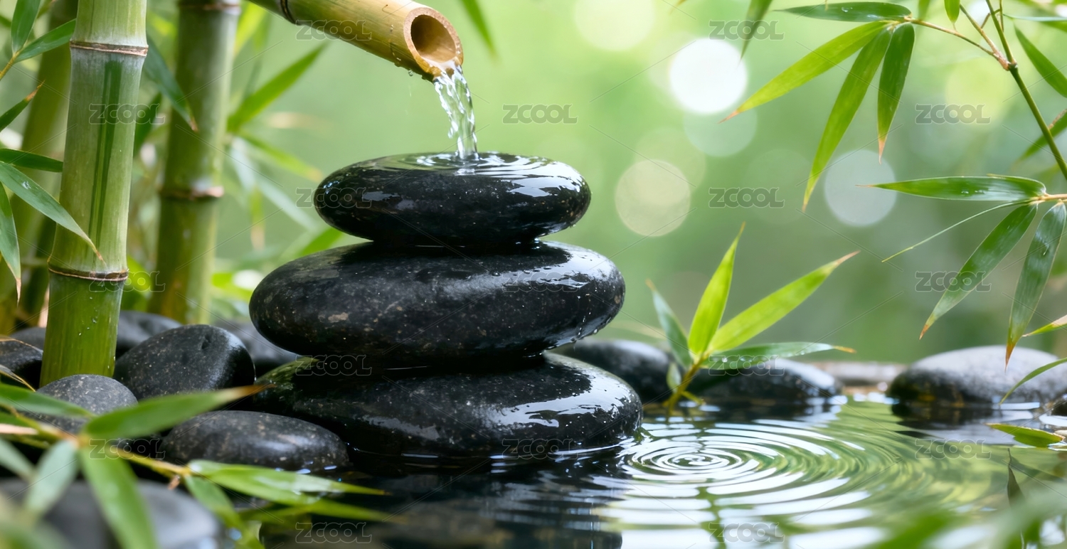 竹叶,鹅卵石,无人,中国风,新中式,人造场景,新中式场景,电商背景,商品展台,商品展示
