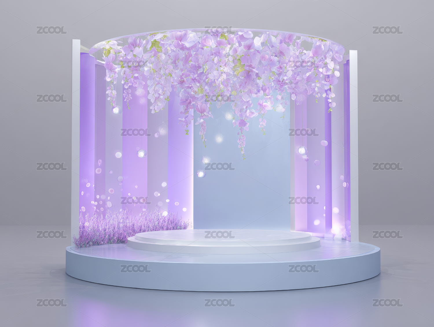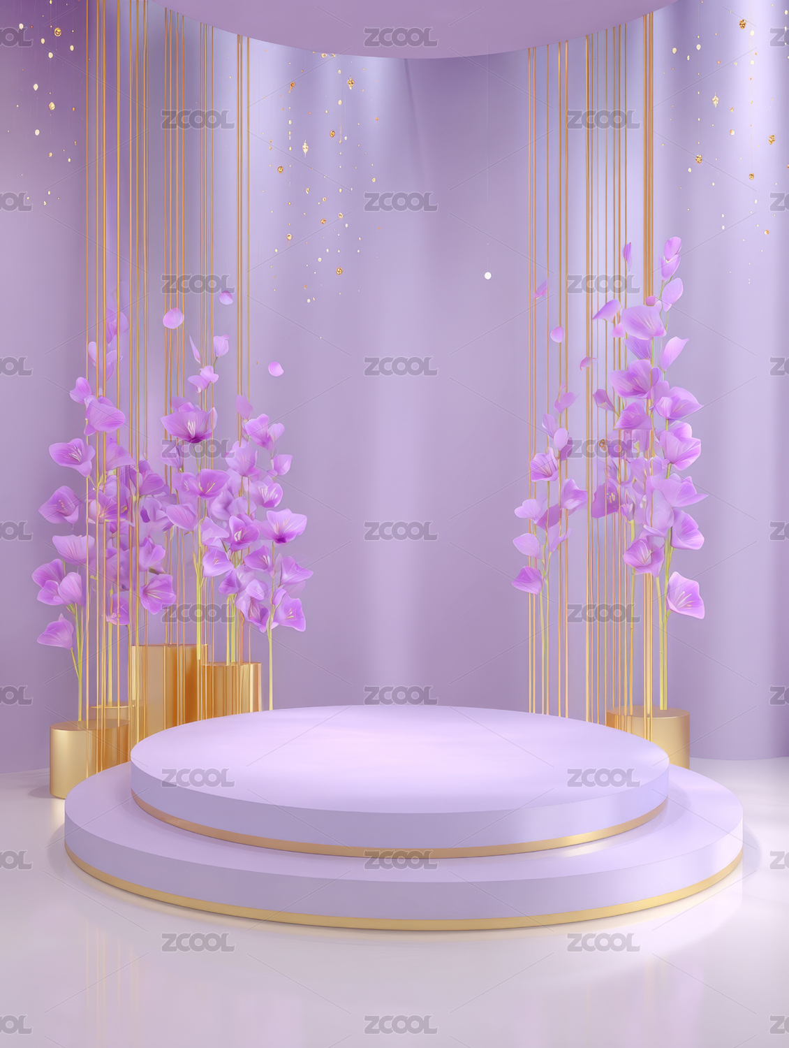 紫色简约背景薰衣草围绕的圆形产品展示台
