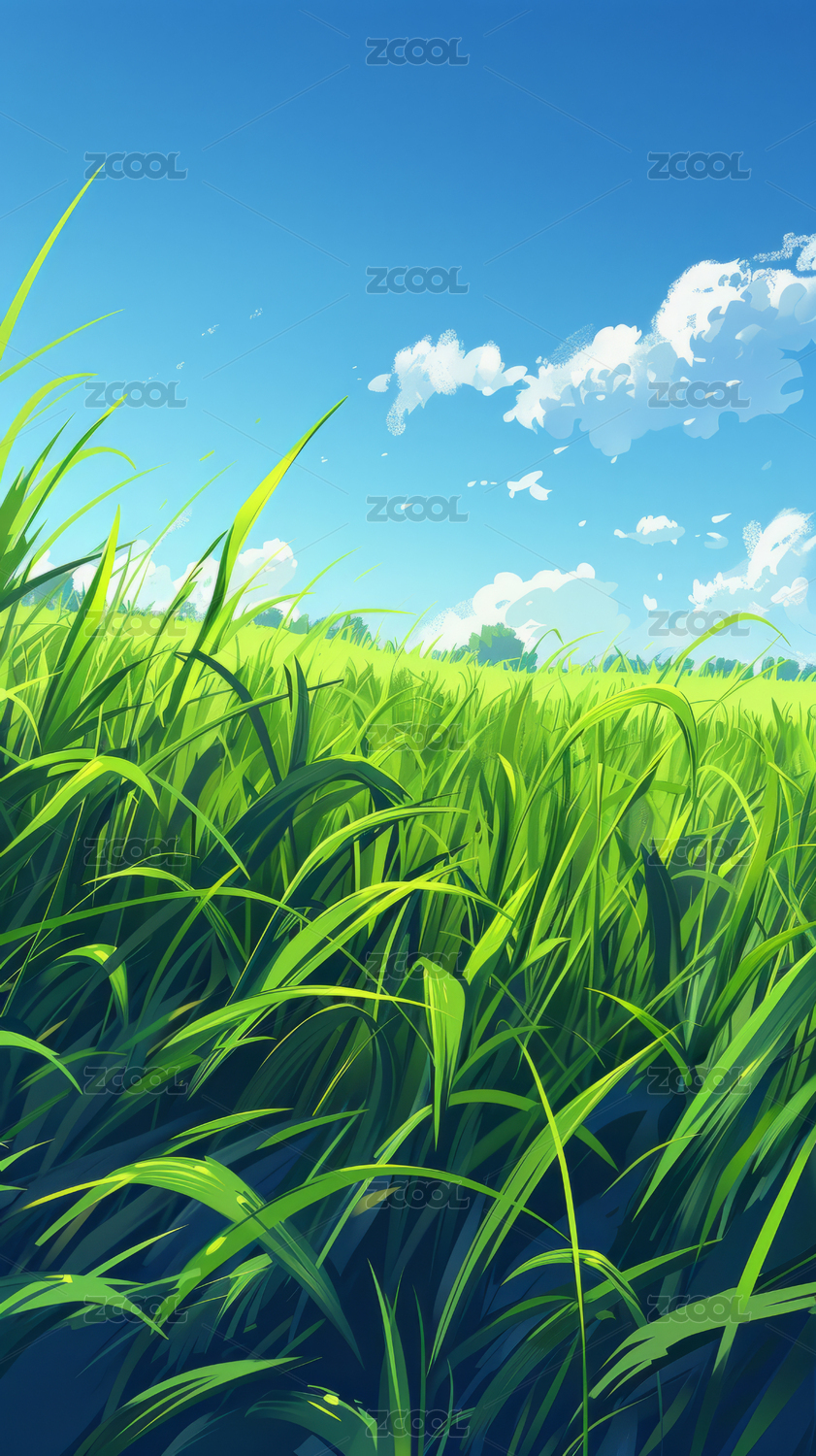 青草蓝天白云风景图