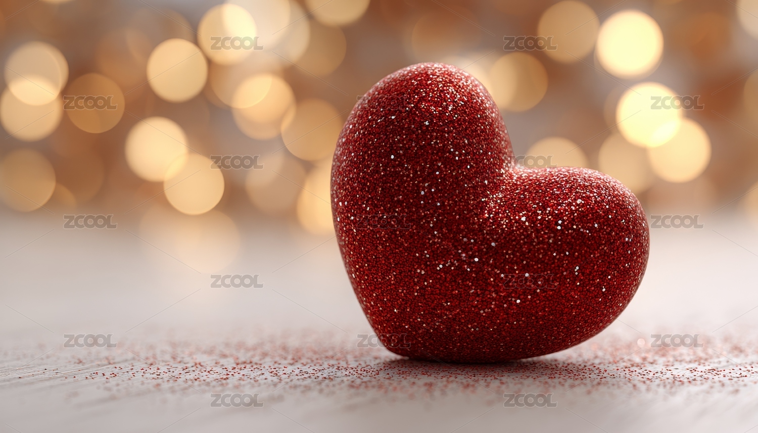 两颗闪耀红心在梦幻光斑背景中相依