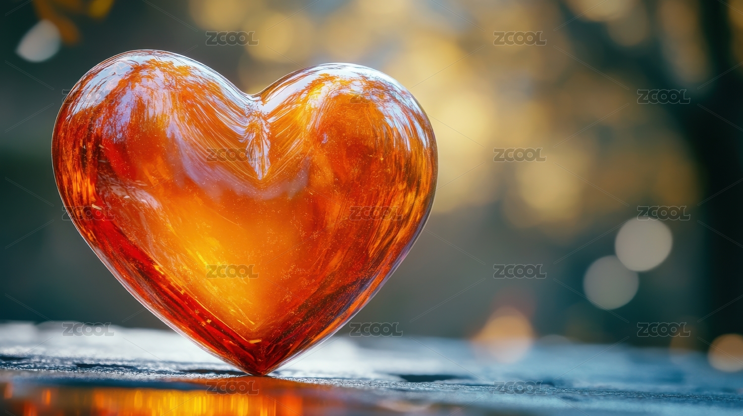 玻璃心形艺术品在自然光下闪耀