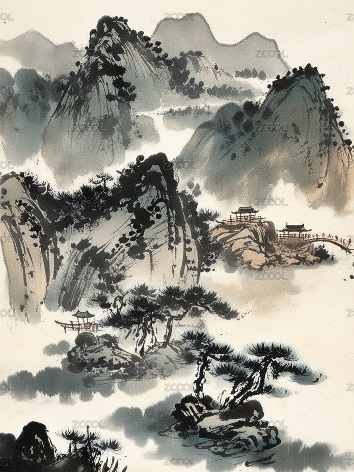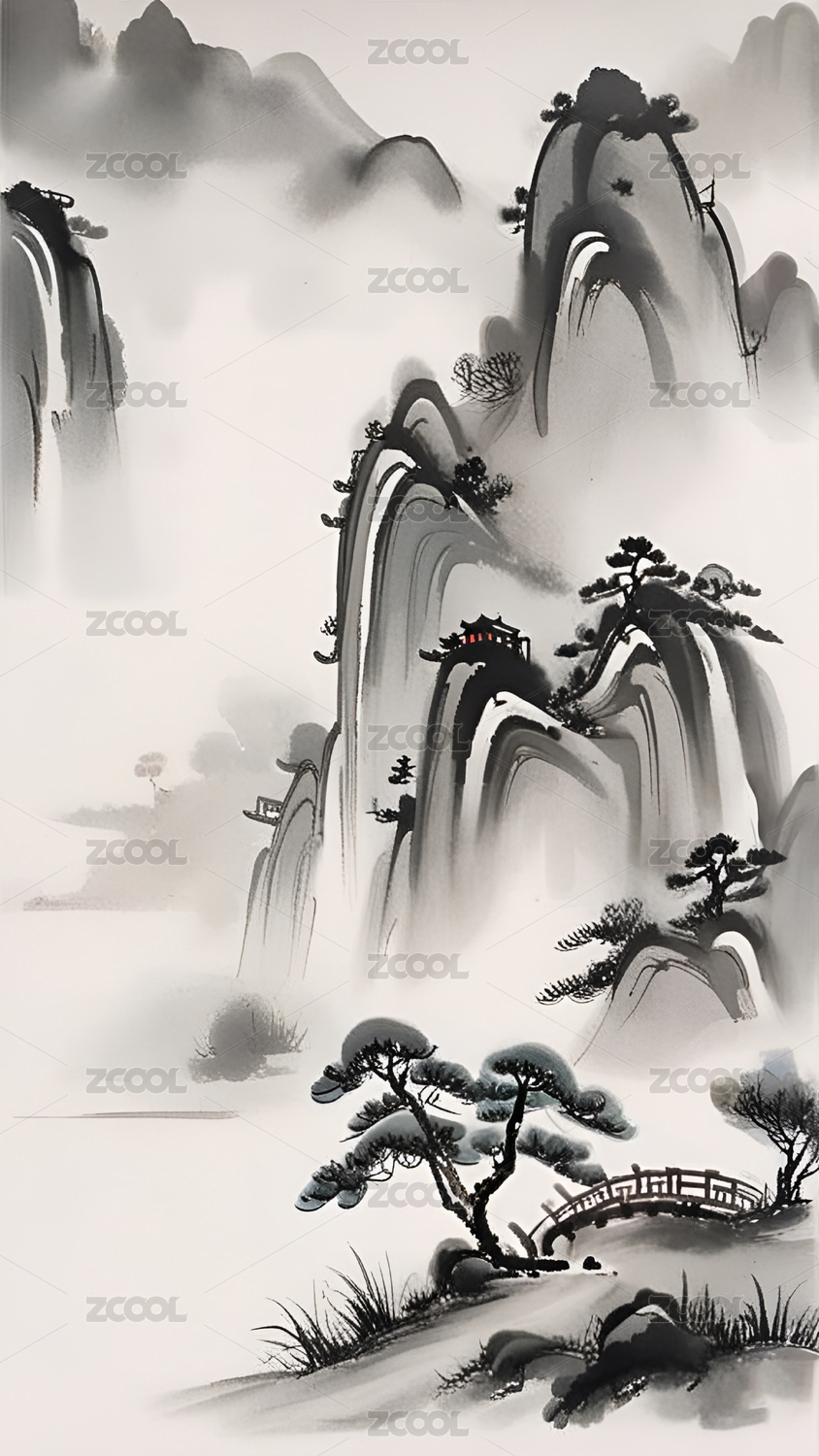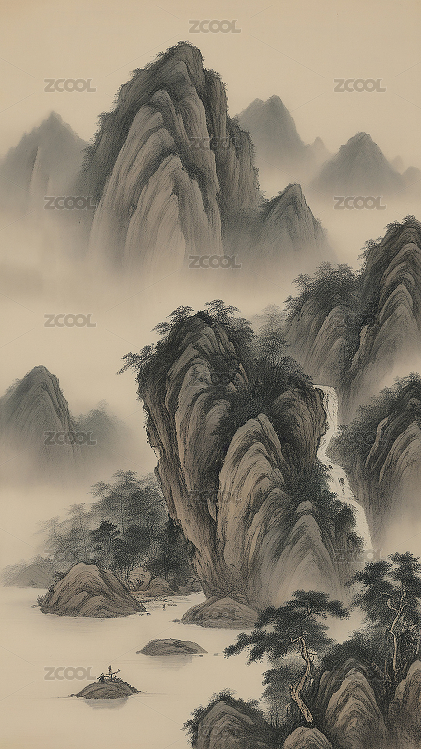 水墨画,山水画,中国风,古画,国潮,国画,山脉,山峰,山林,山峦