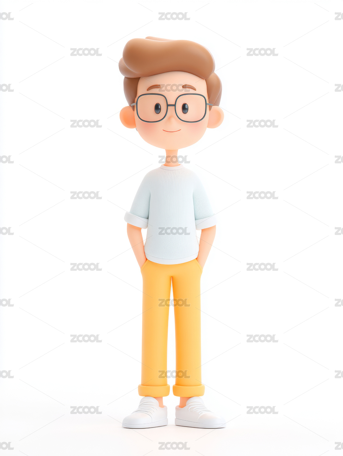 3D渲染可爱卡通戴眼镜的男孩人物插画
