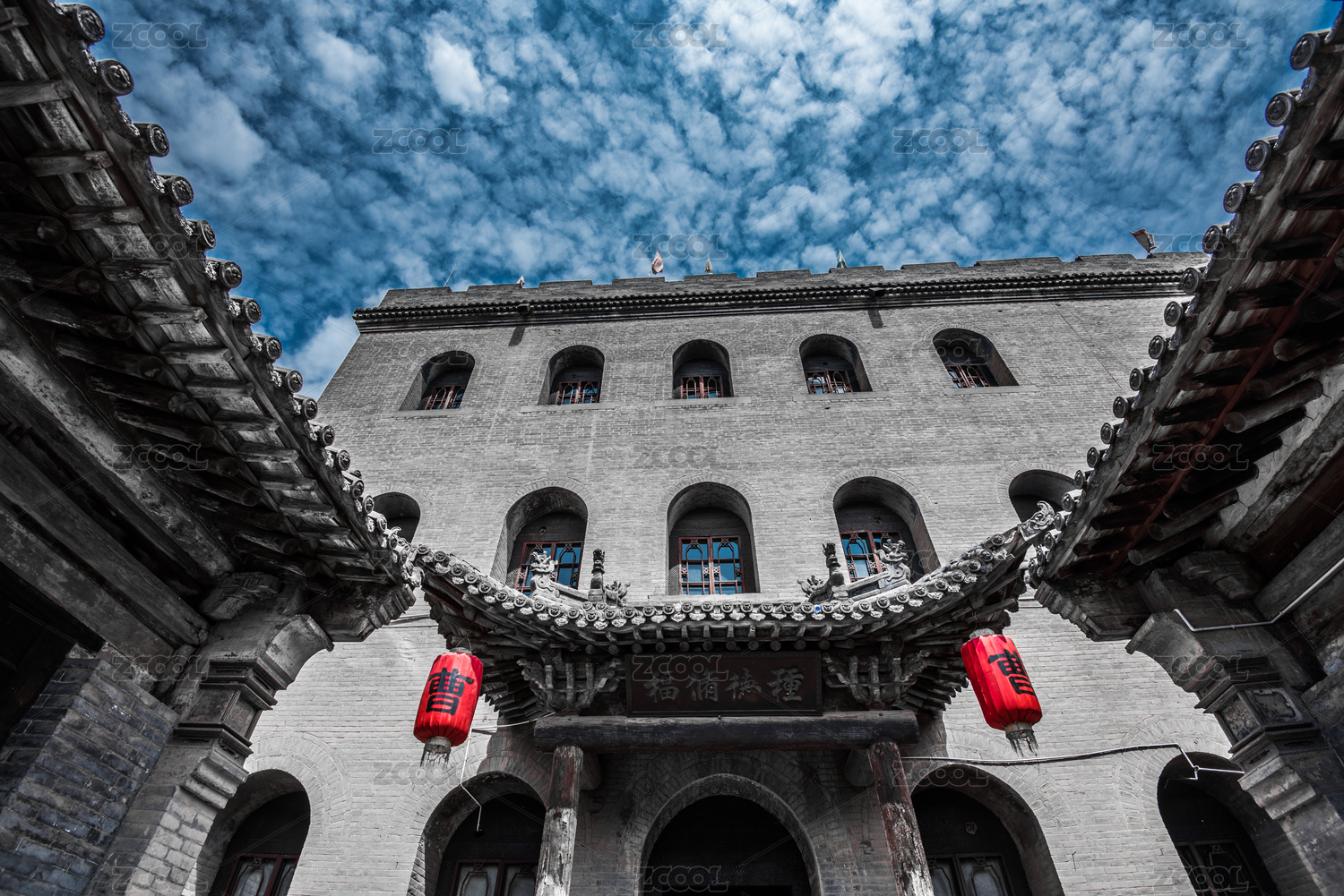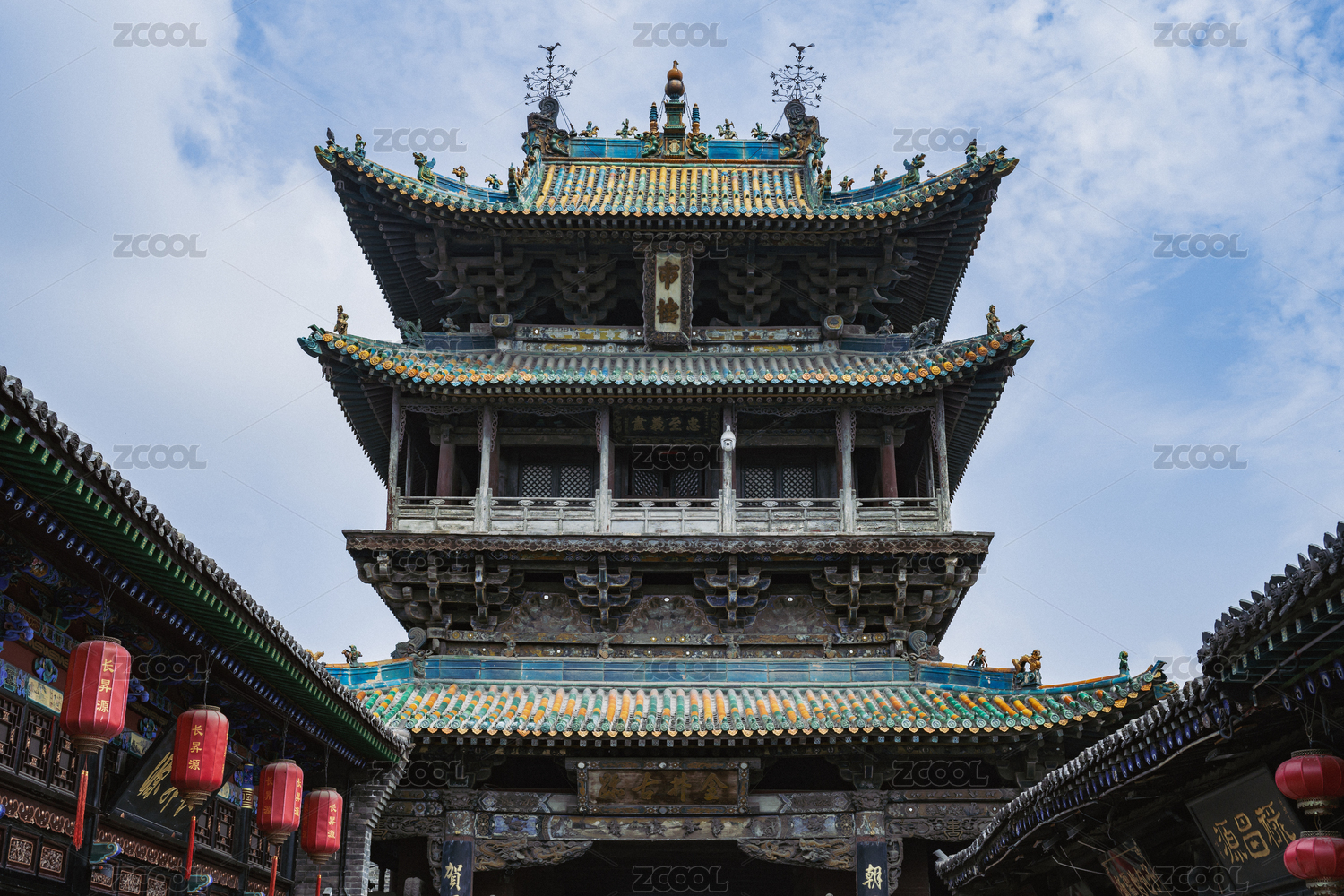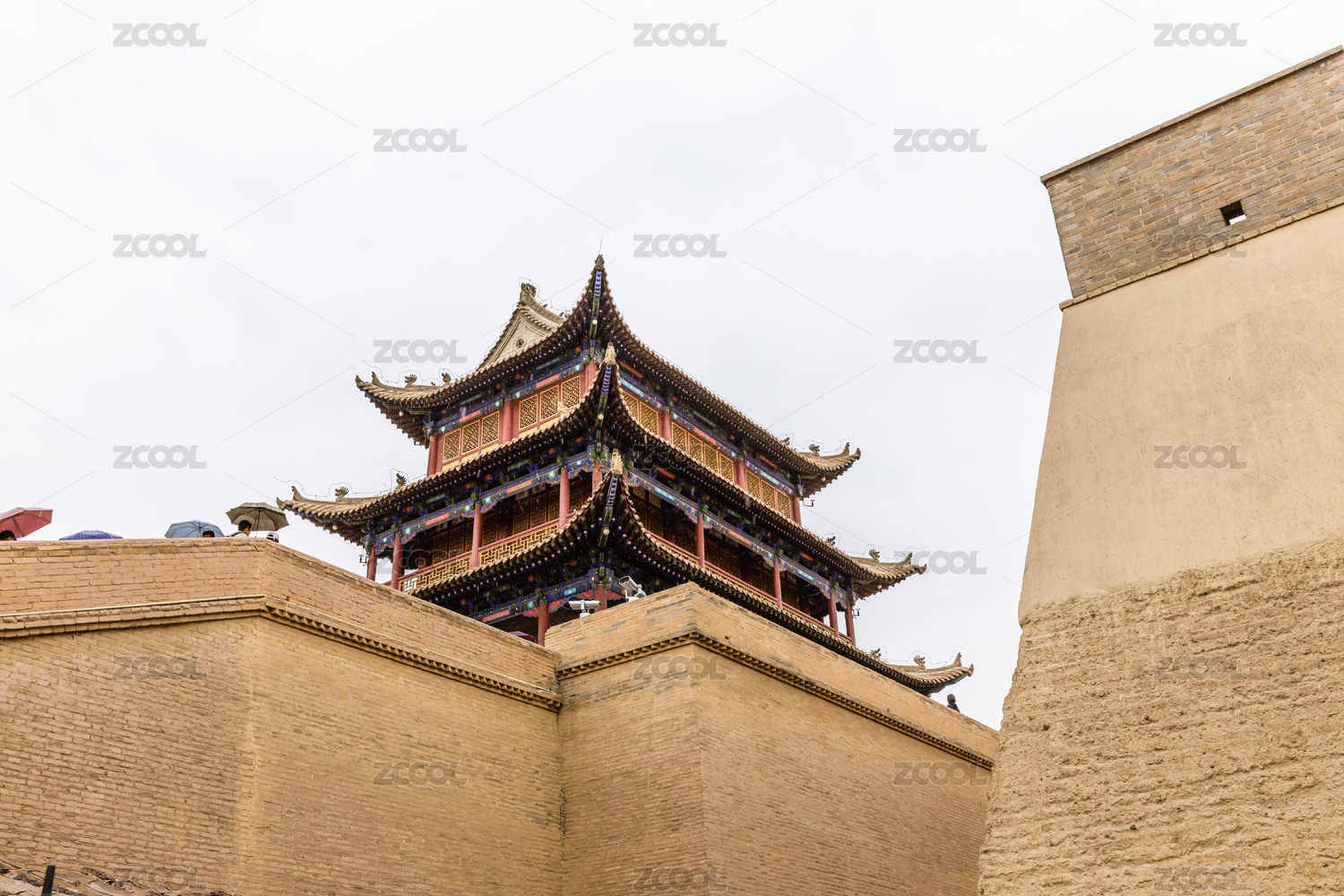 中国山西省大同市云冈石窟洞窟阁楼园林建筑