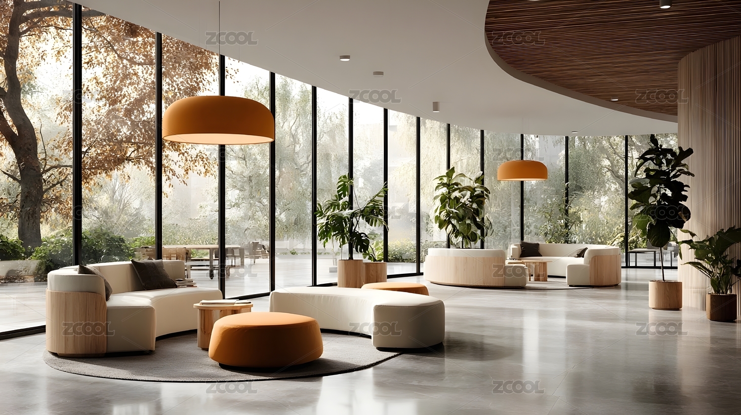 大厅,长沙发,座位,宽敞,舒适,明亮,咖啡桌,落地窗,时尚,室内
