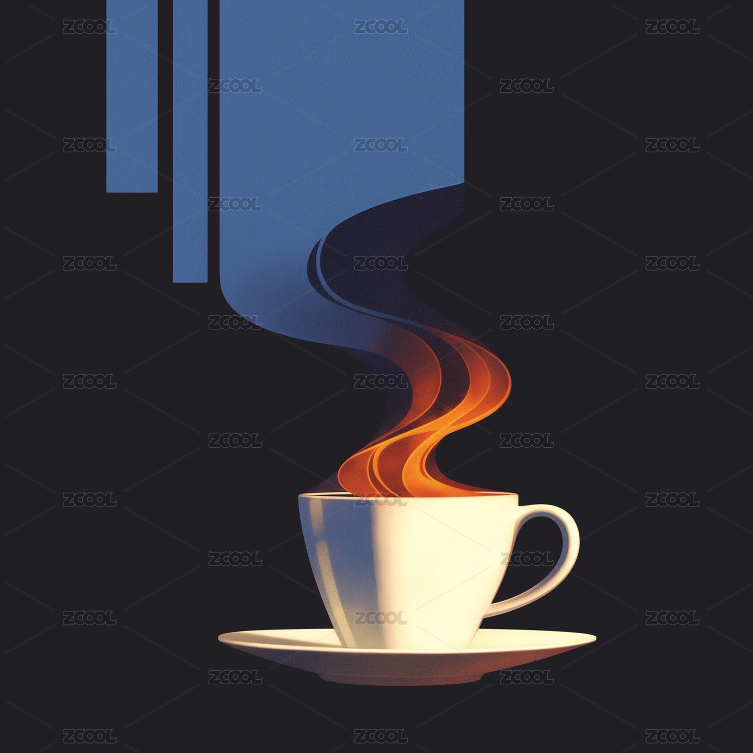 黑底桌面冒热气的一杯茶热饮3D立体插画