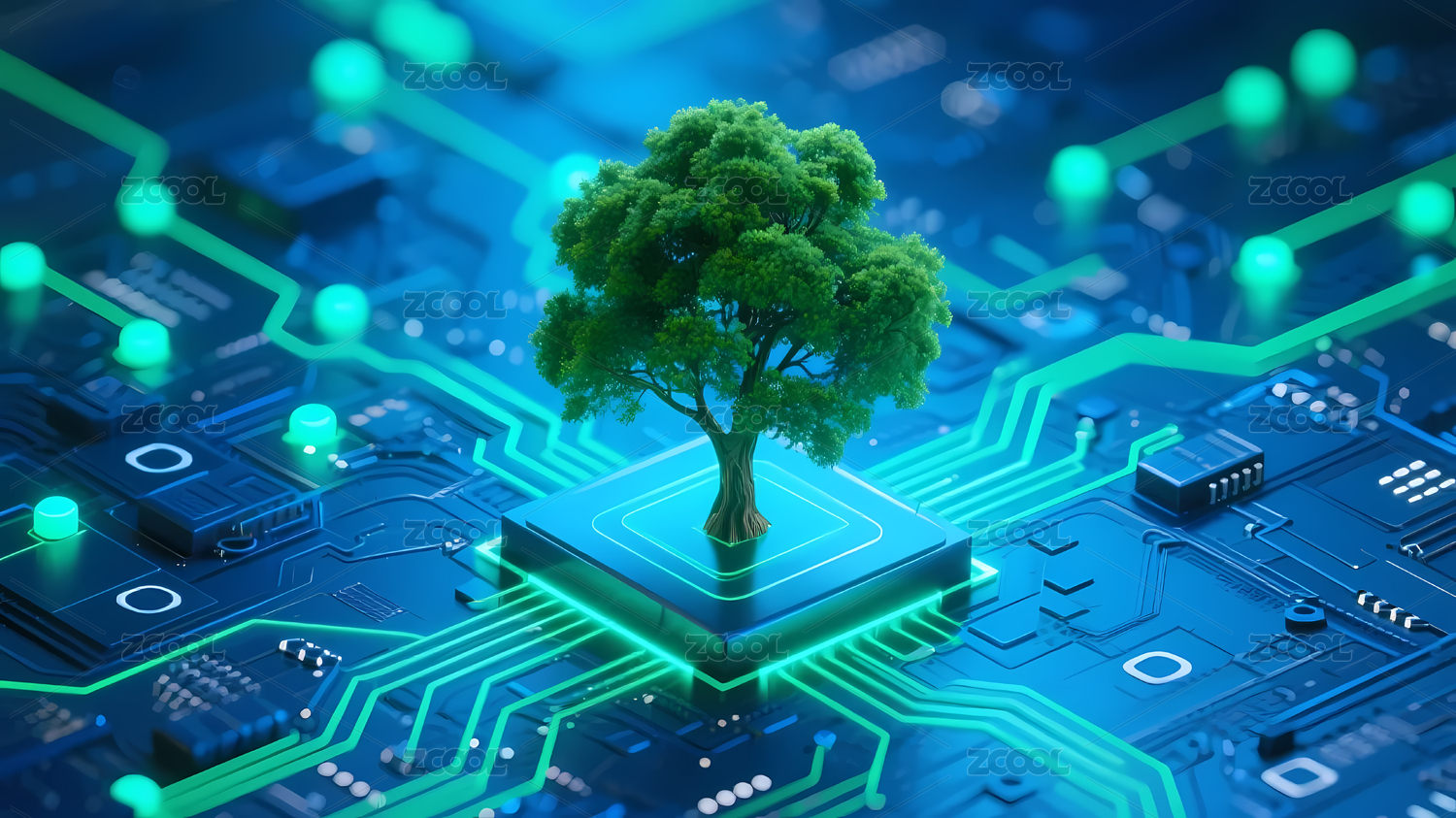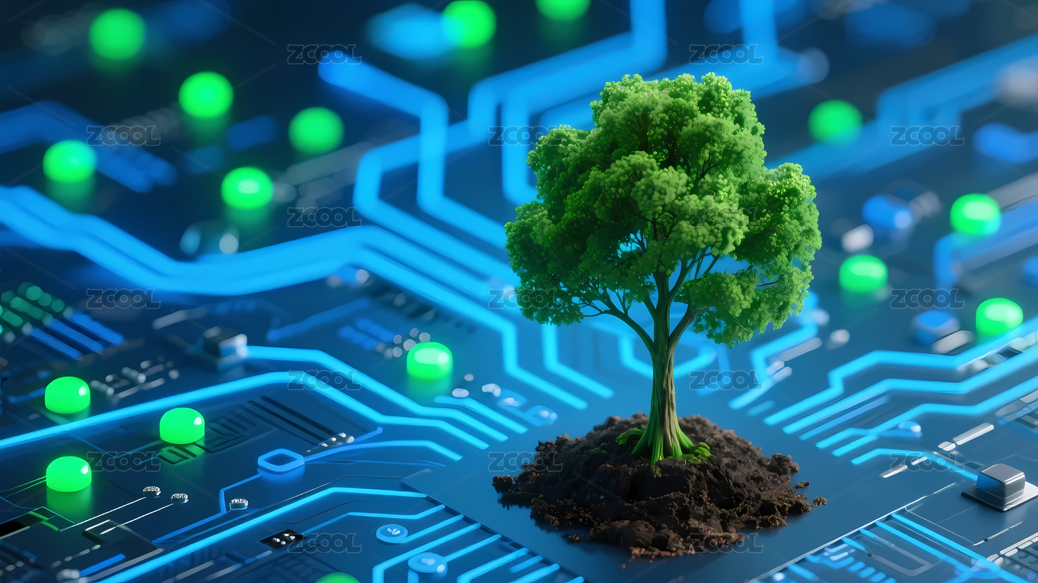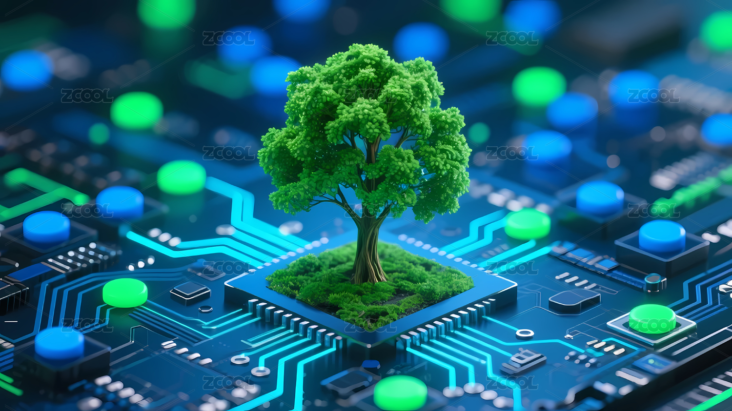 绿色小树生长在电路板上