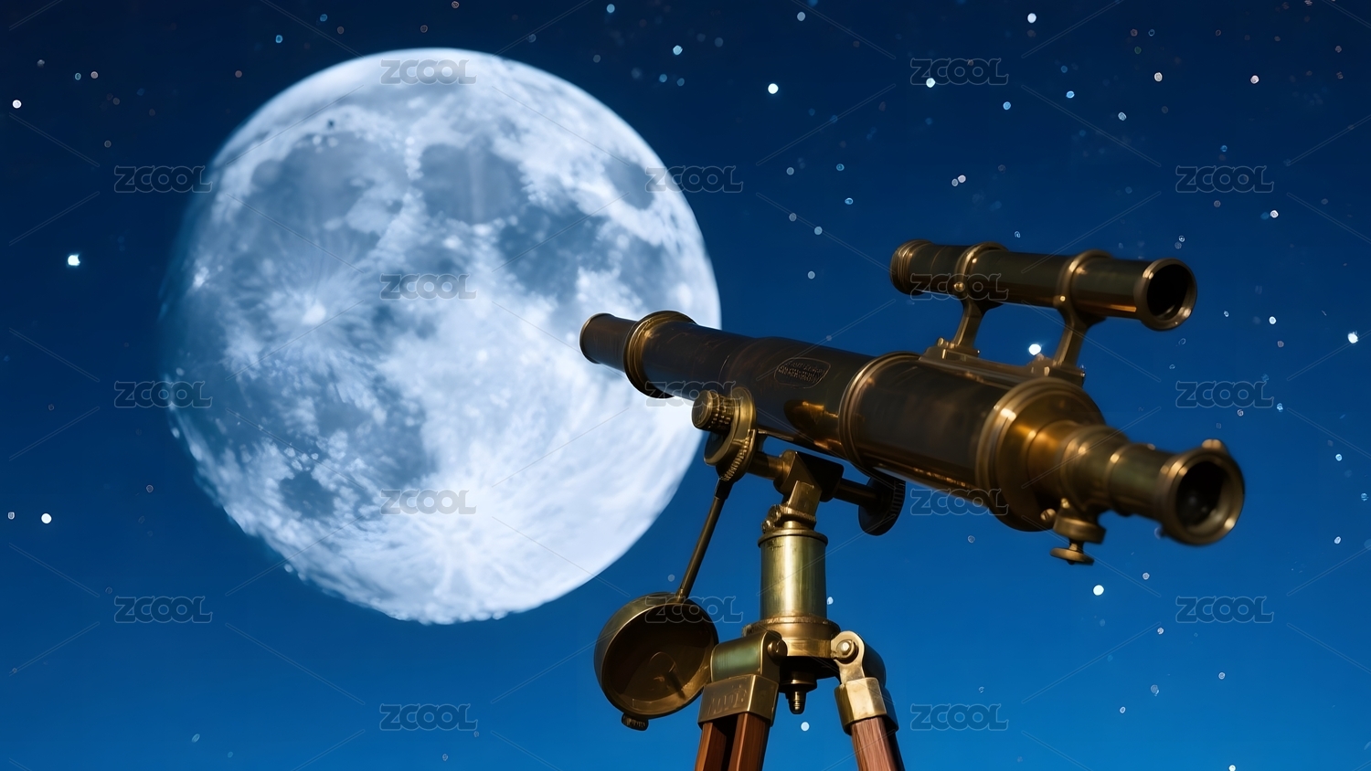 深蓝夜空金色望远镜