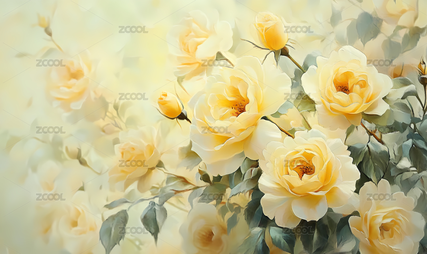复古印象派攀枝玫瑰花油画背景海报装饰画