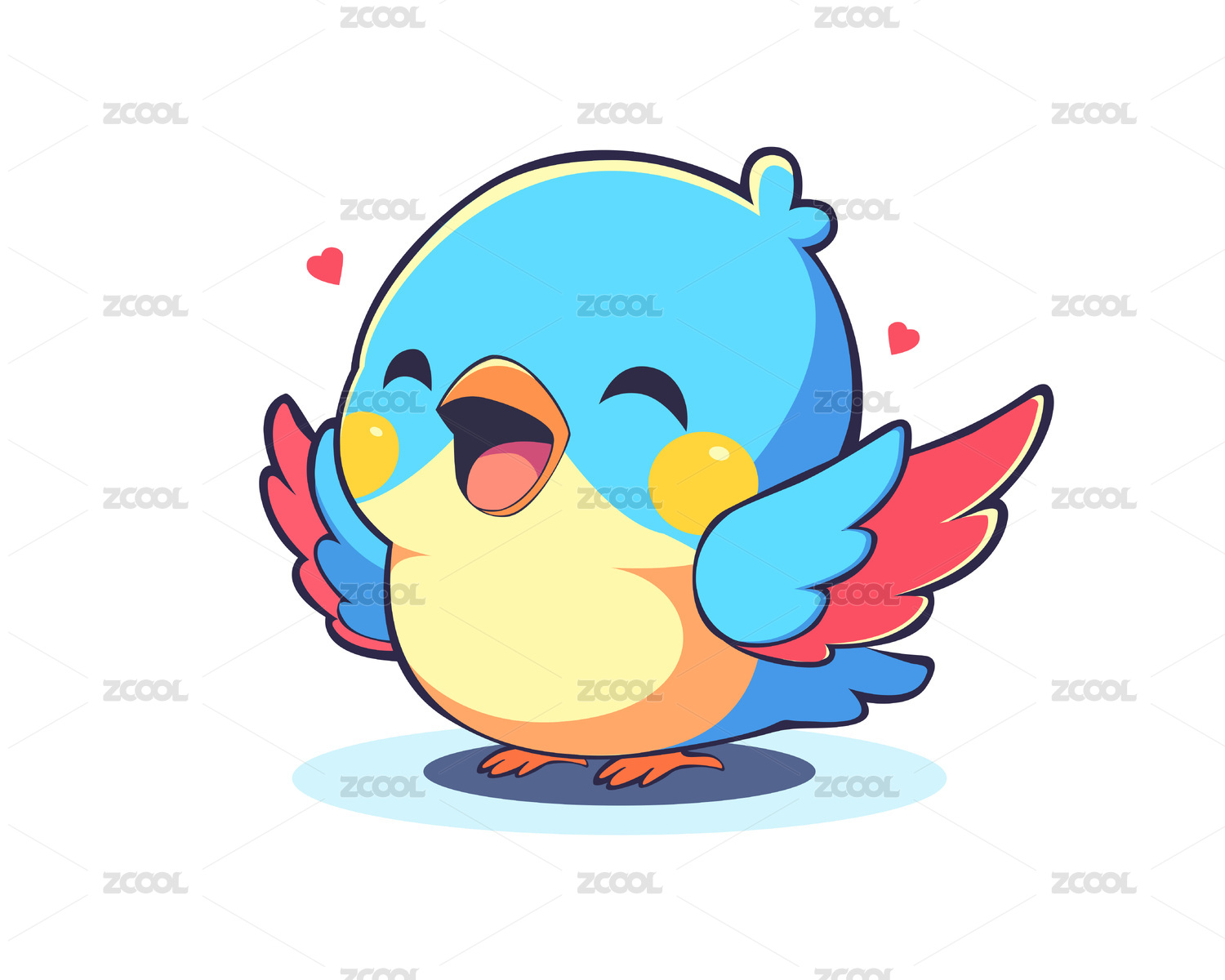 一只可爱的小鸟在唱歌扁平风矢量插画