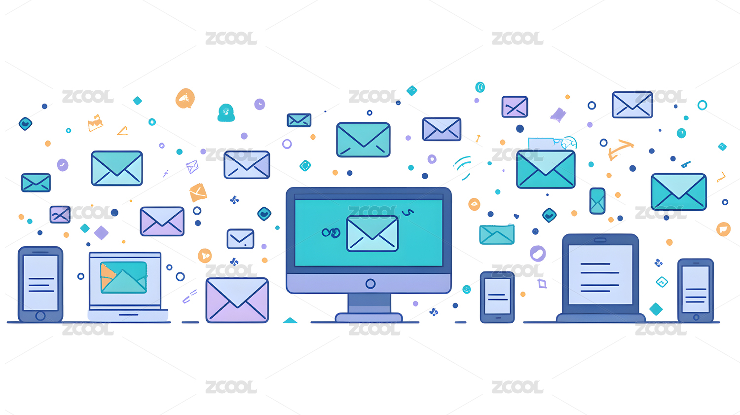 电脑手机邮件办公场景