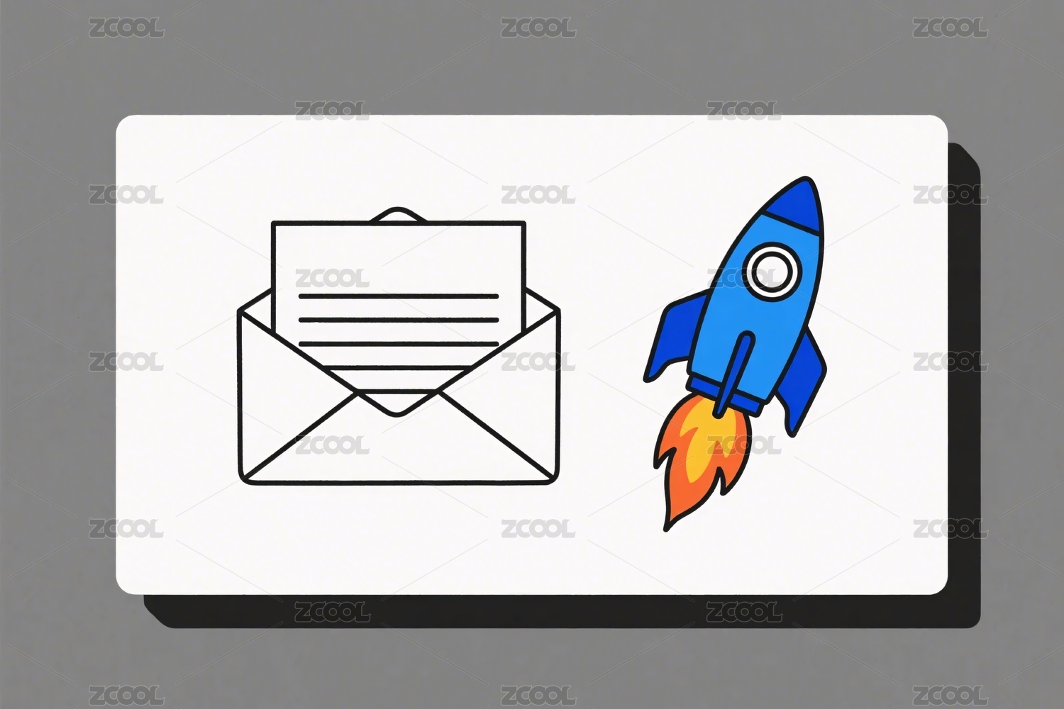 信封与火箭插画