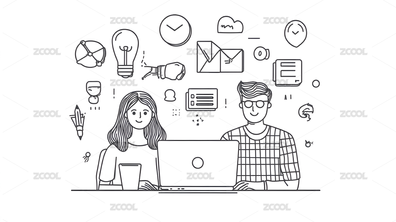 办公室电脑工作卡通插画