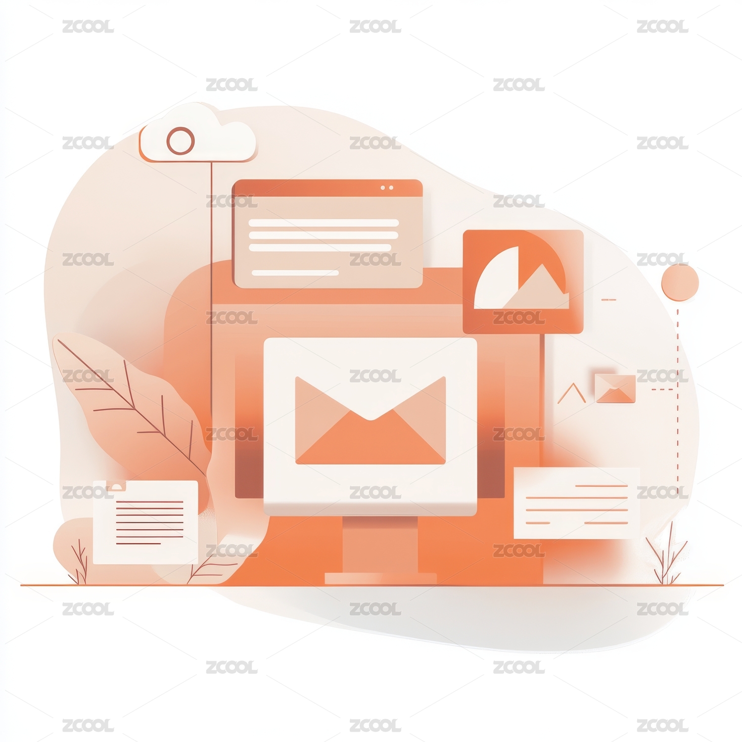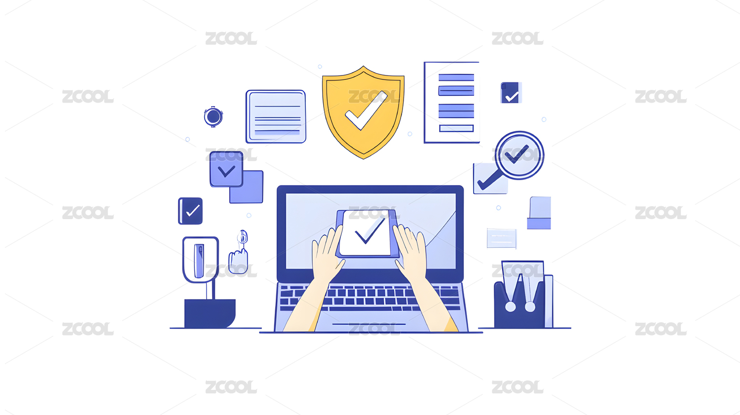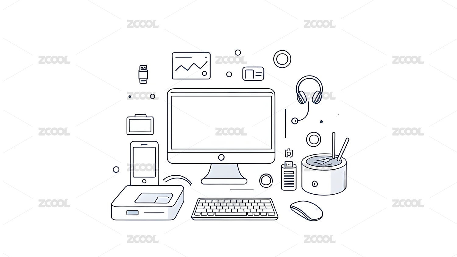 电脑办公平面插画背景