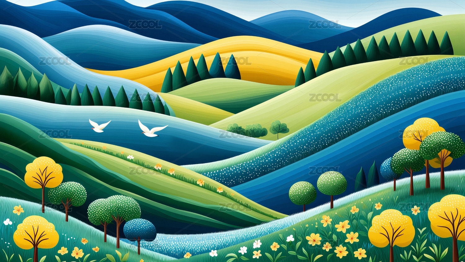 卡通风格的绿色风景画
