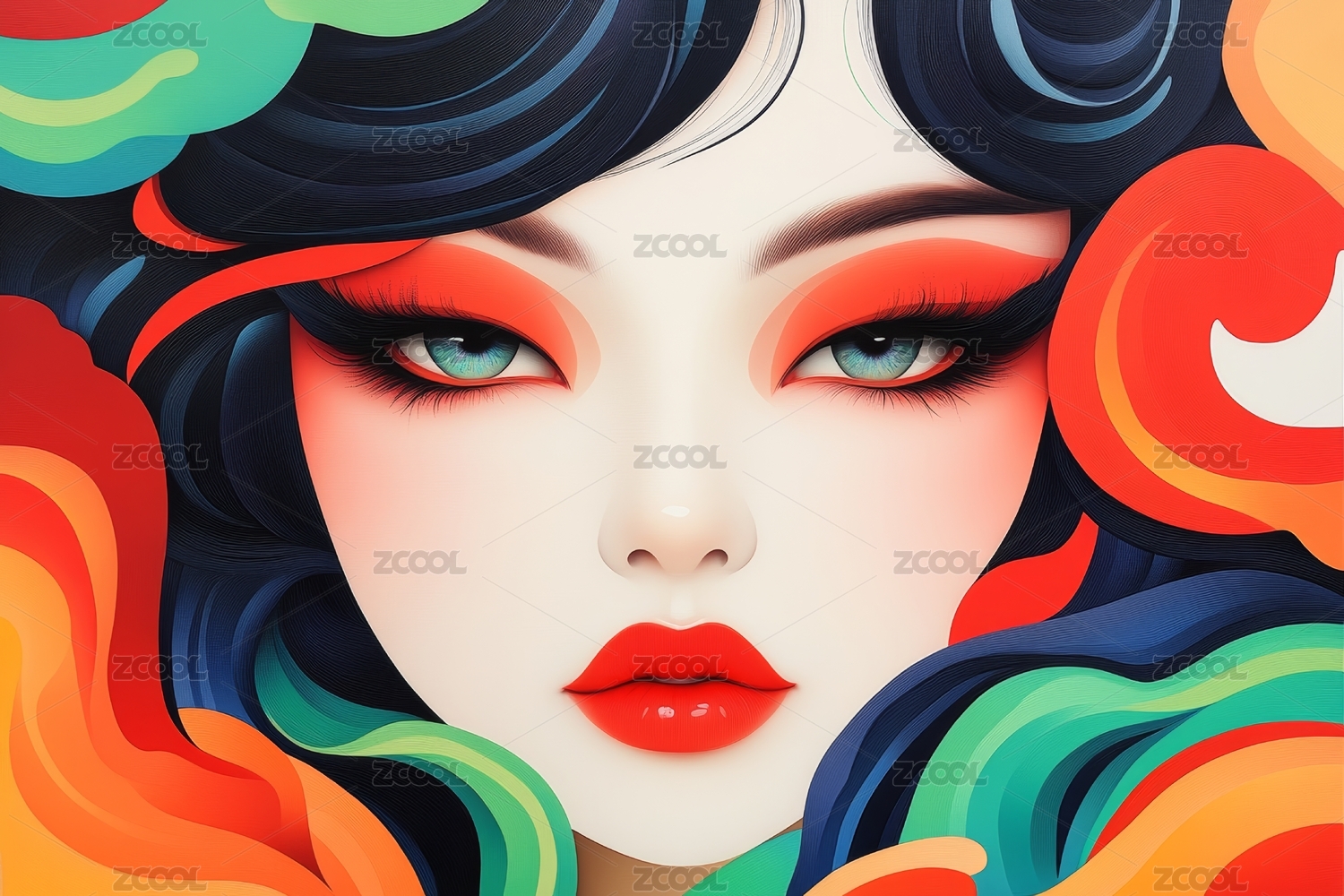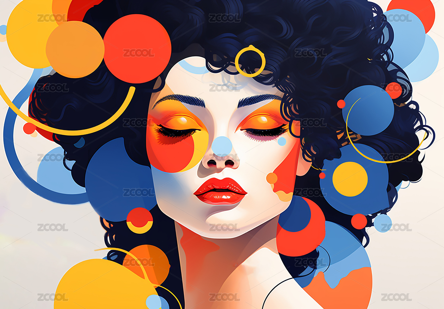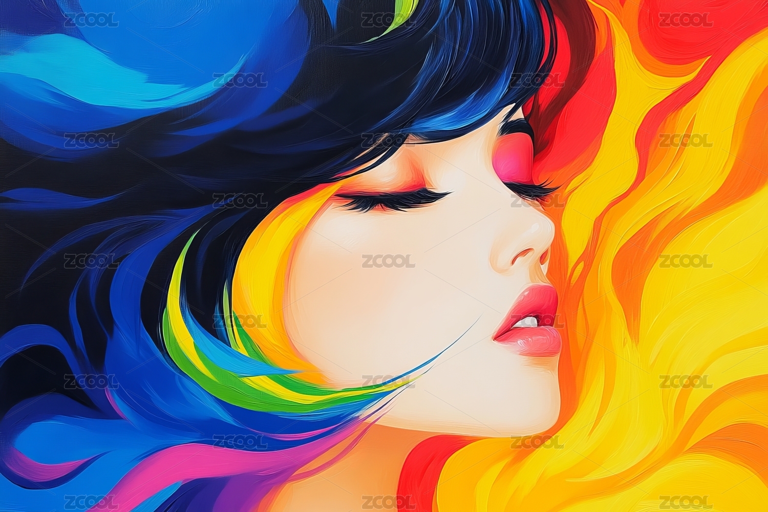 女性,侧颜,肖像,艺术,绘画,色彩,鲜艳,抽象,线条,曲线