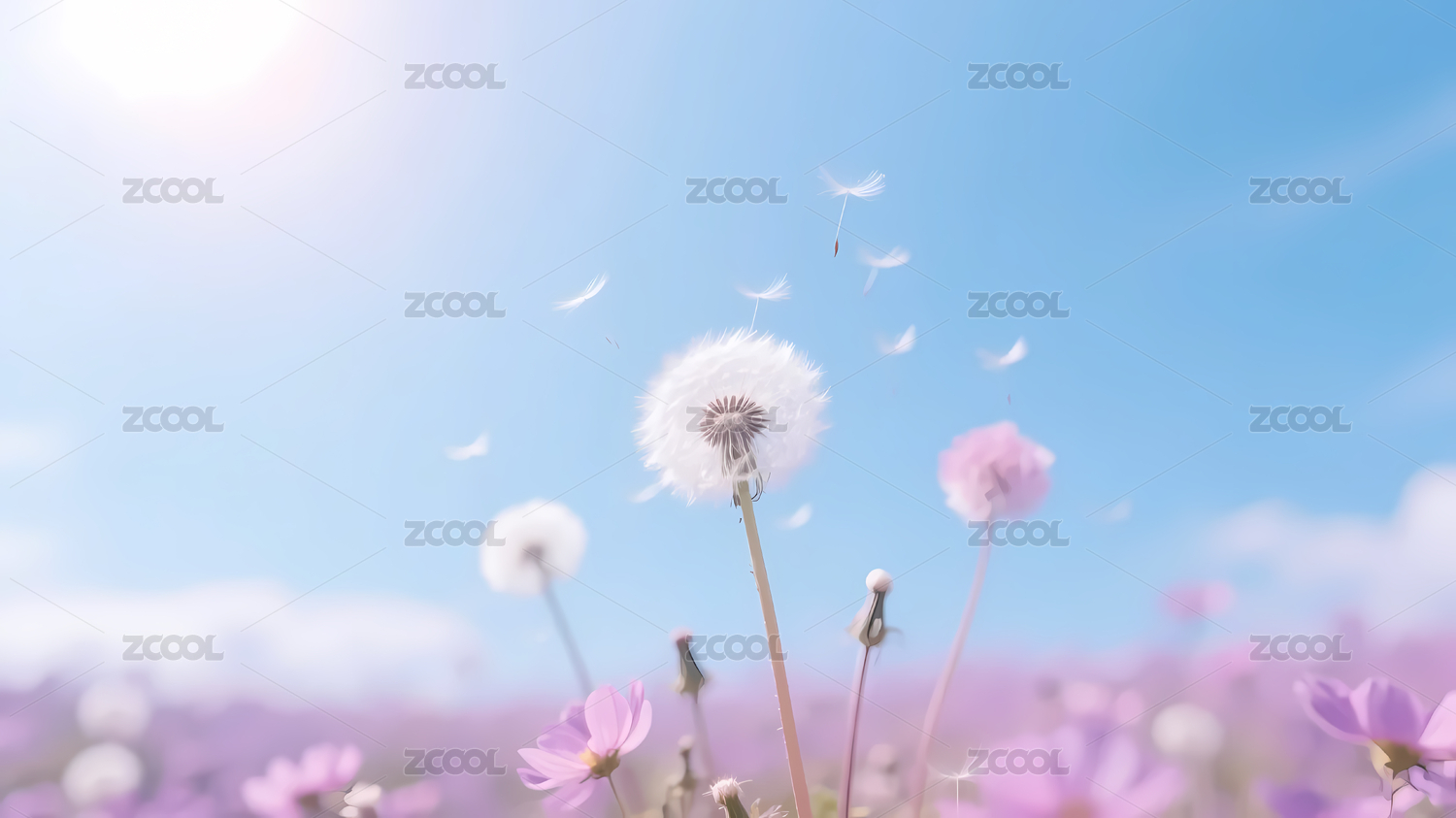 粉蓝渐变白色蒲公英