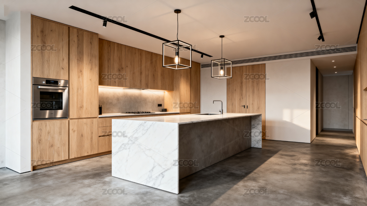 厨房,现代,简约,白色,橱柜,灯光,植物,窗户,烤箱,室内