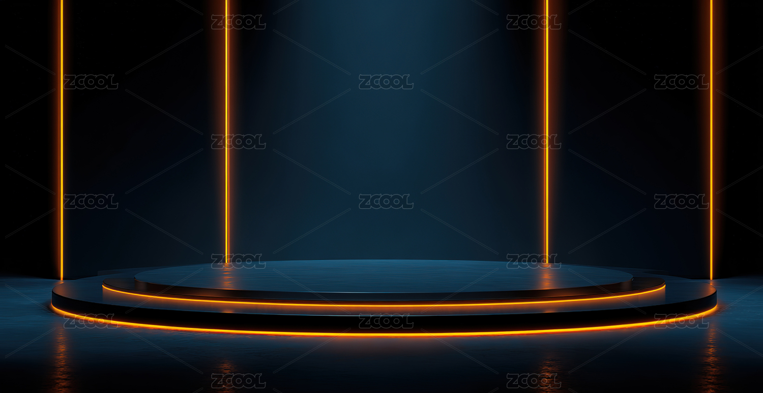 未来感,科技,展示台,霓虹灯,黑色,背景,黄色,灯光,圆形,平台