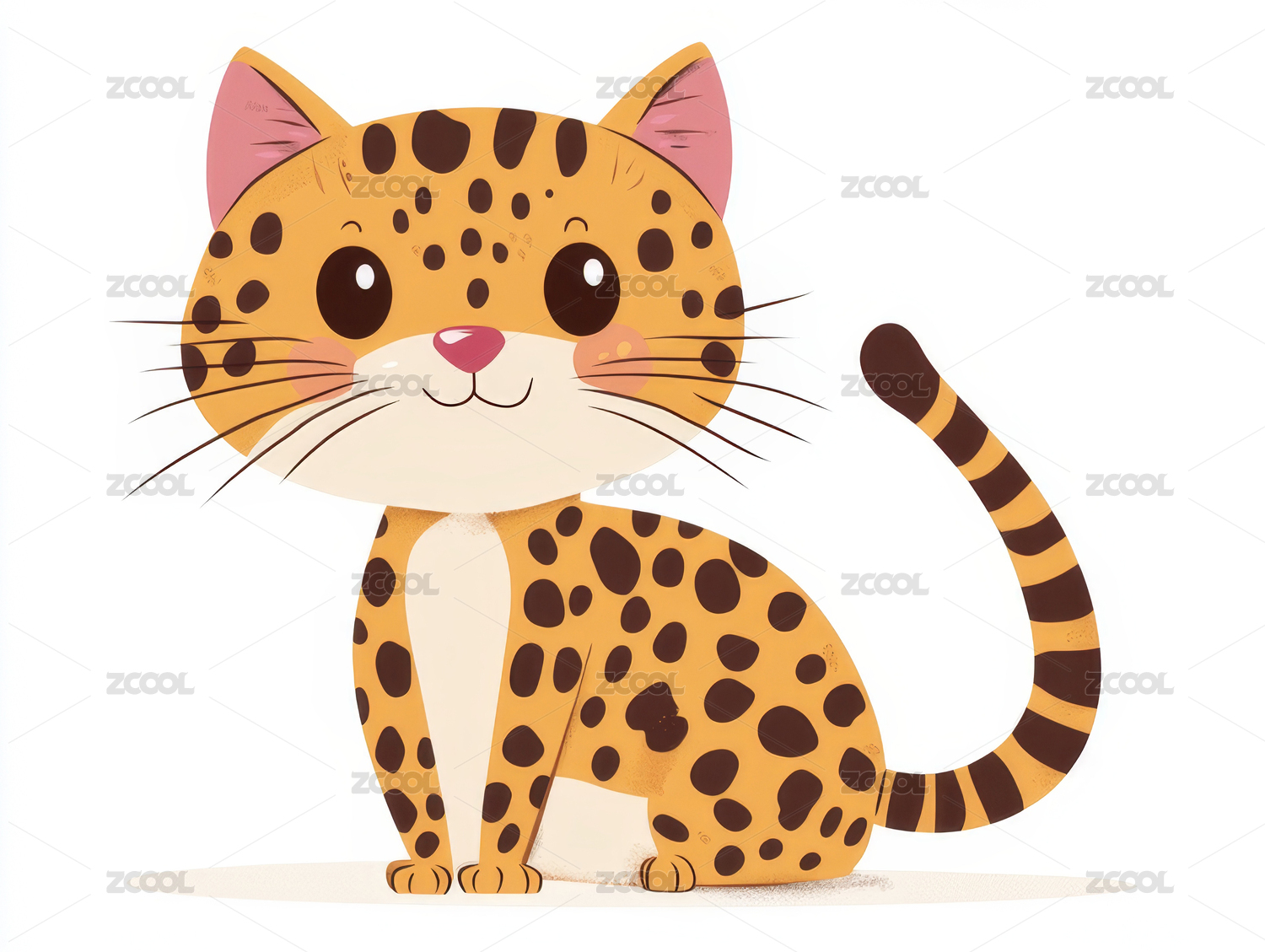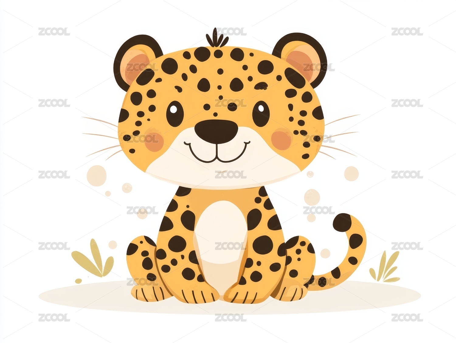 卡通,豹子,可爱,坐姿,斑点,动物,野生,插画