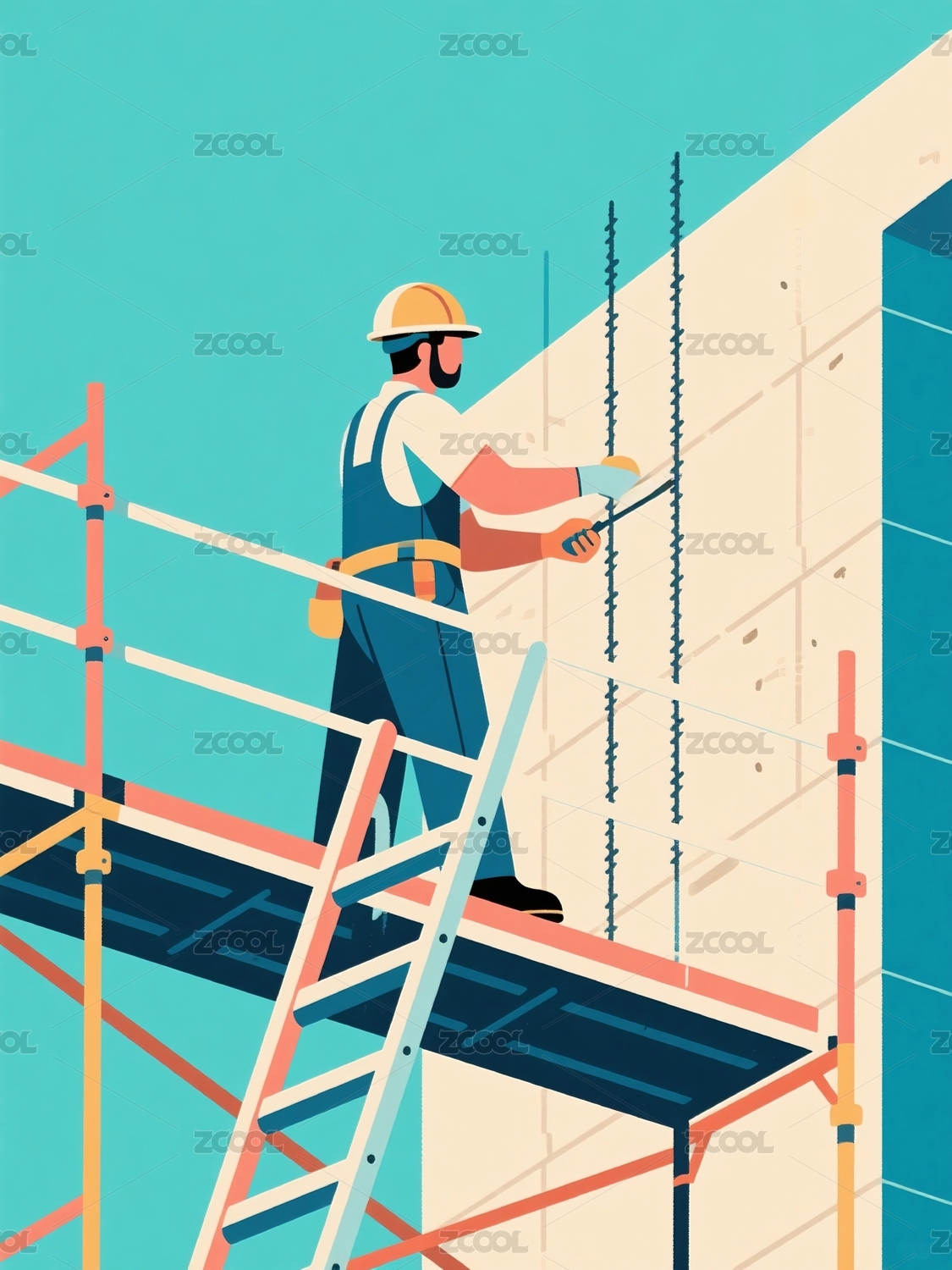 油漆工刷墙插画五一劳动节绿化城市建设海报