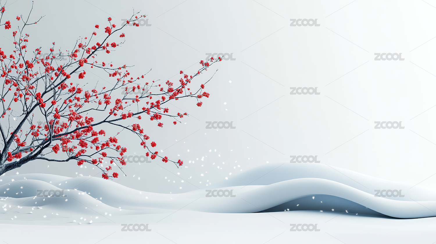 冬日雪景中的红叶树
