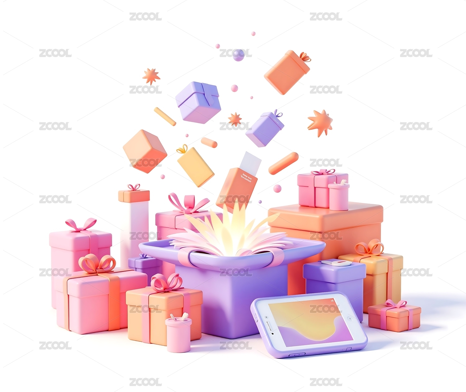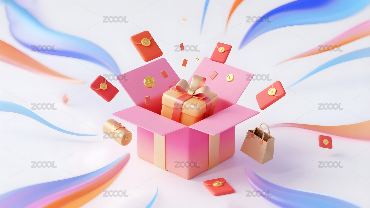 3d卡通电商线上促销狂欢庆典礼物红包组合