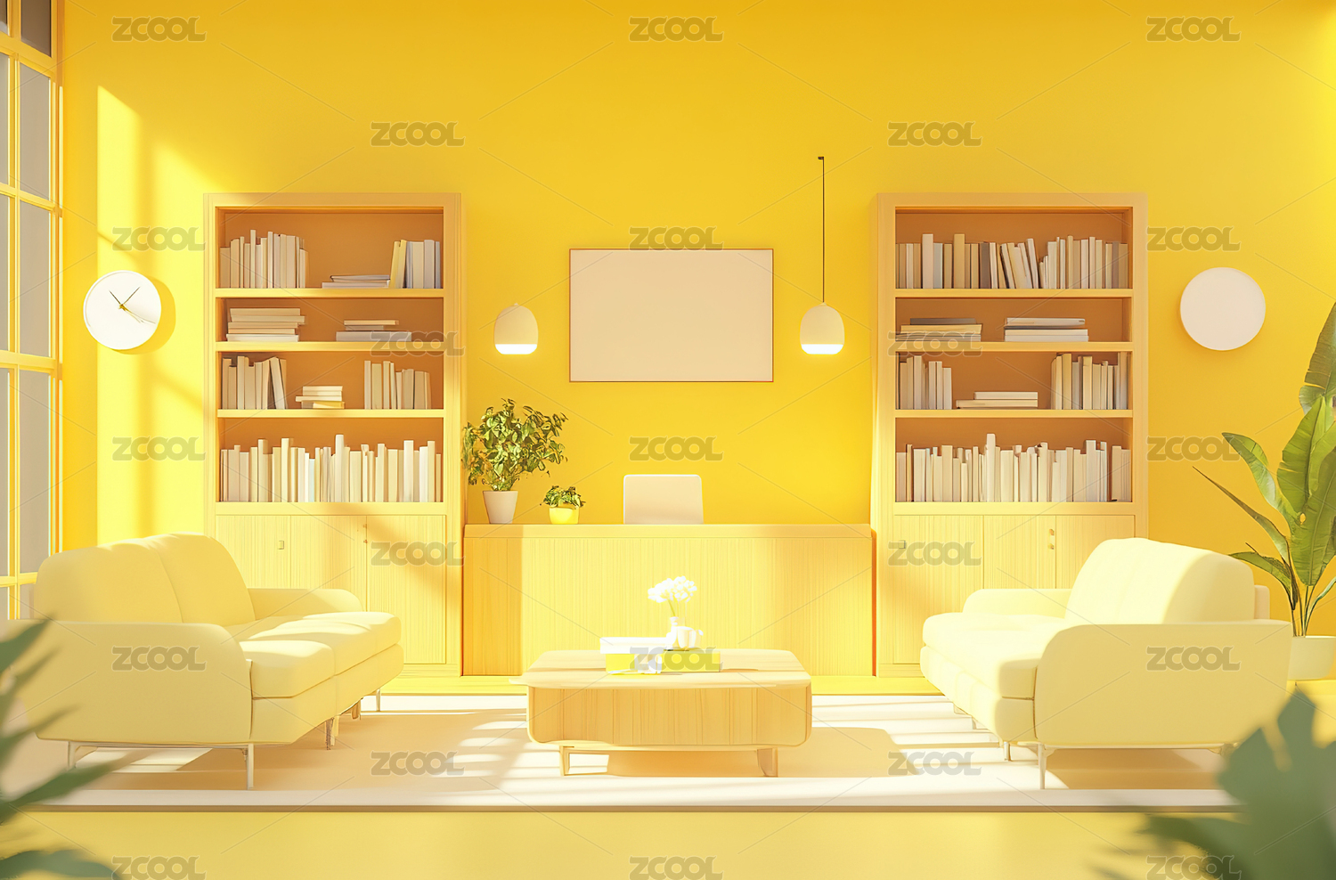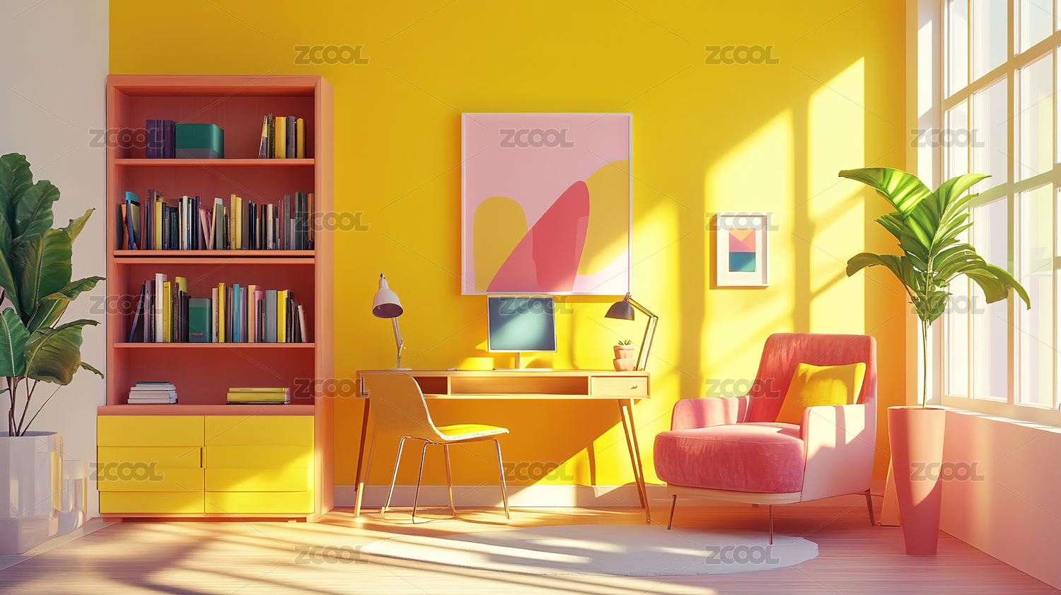 办公室,室内,设计,椅子,桌子,植物,吊灯,书架,笔记本电脑,海报