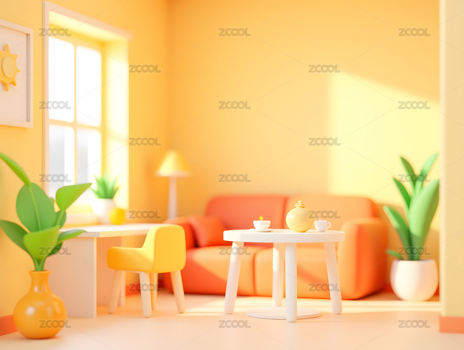 干净的室内白墙和绿植装饰简约空白渲染背景