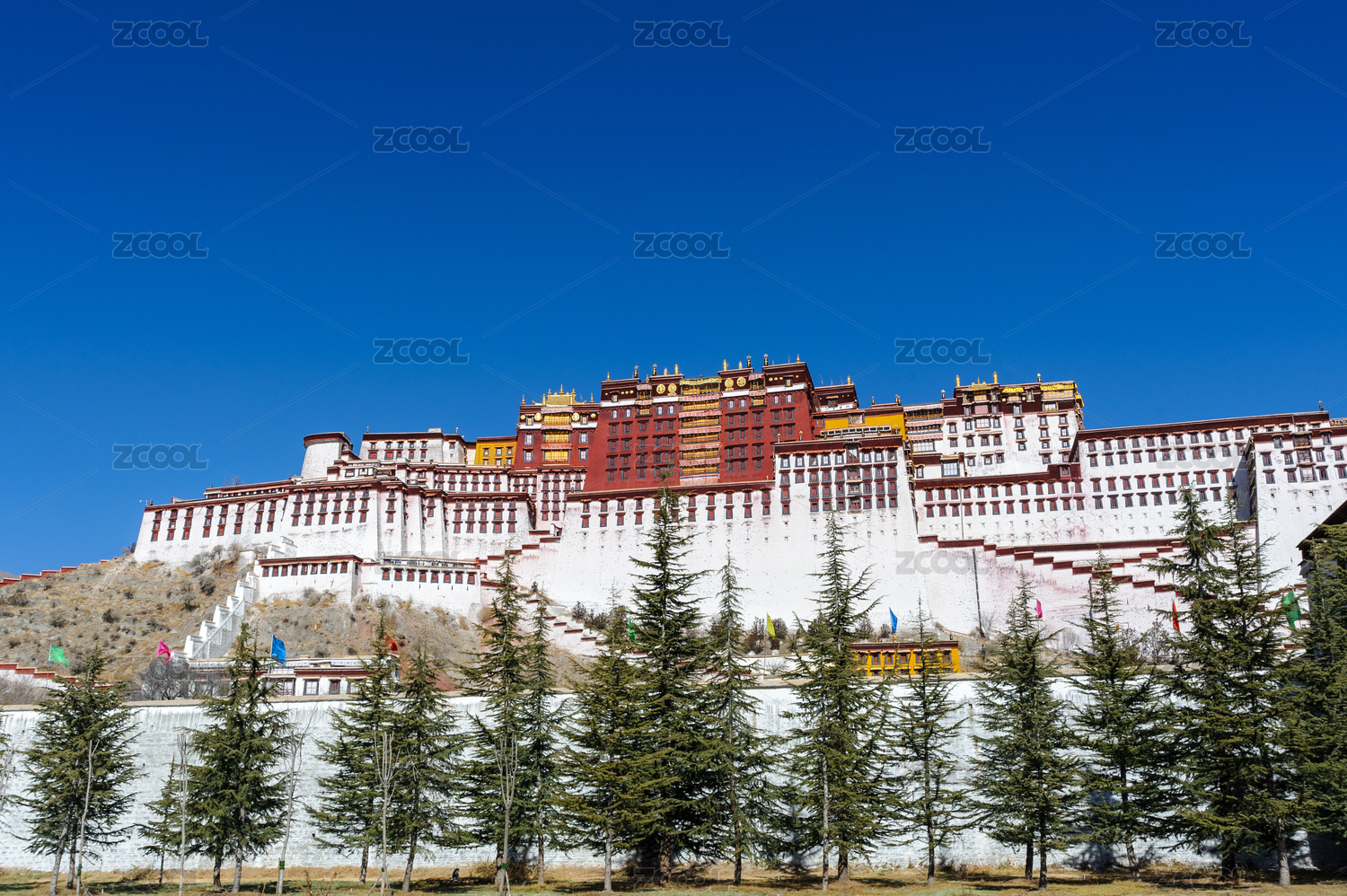 晴朗天空下中国西藏拉萨布达拉宫正面