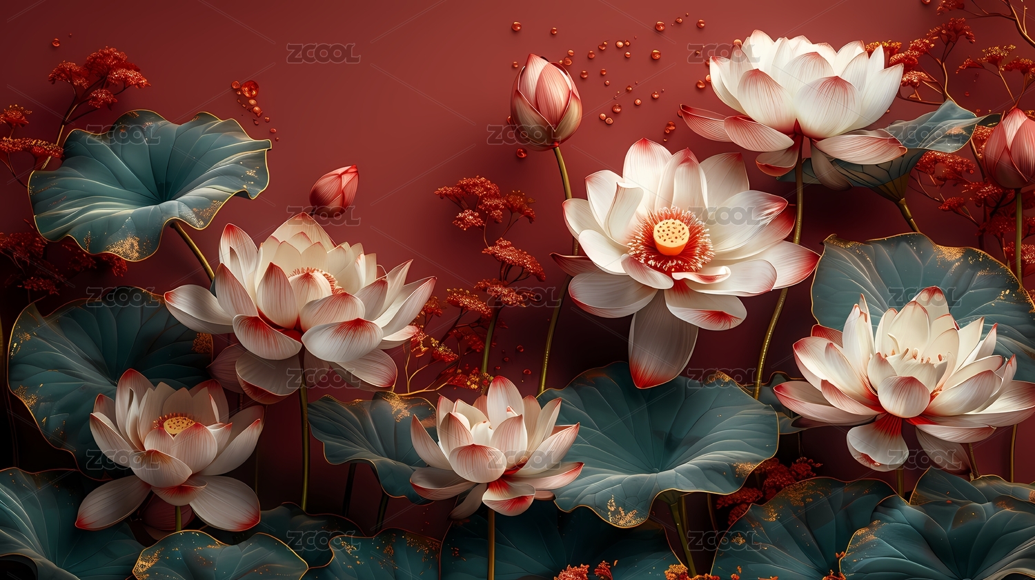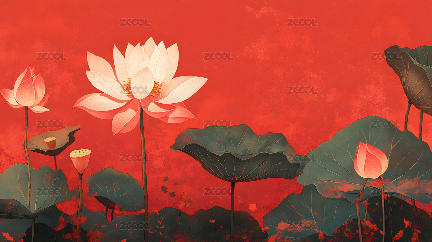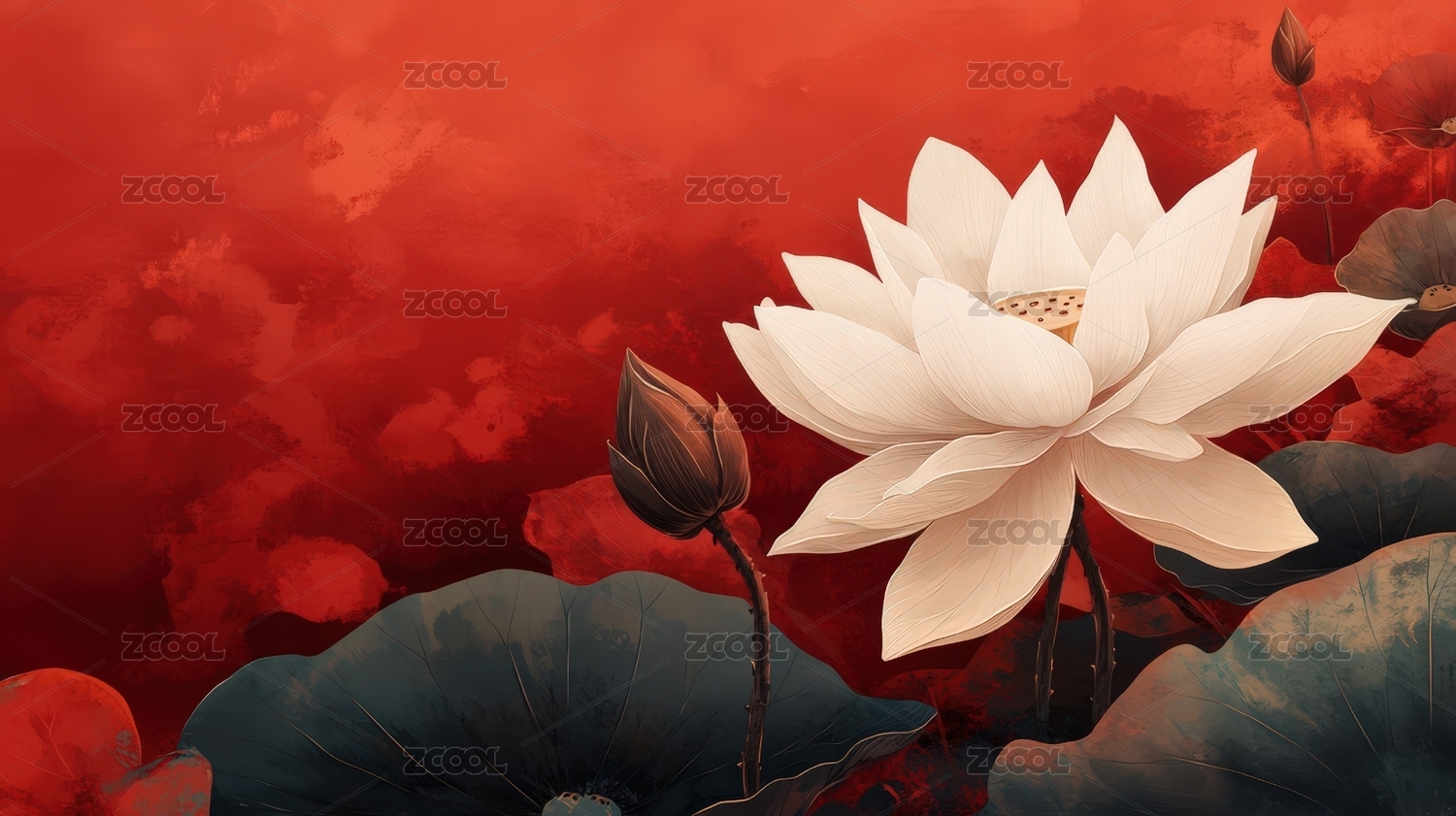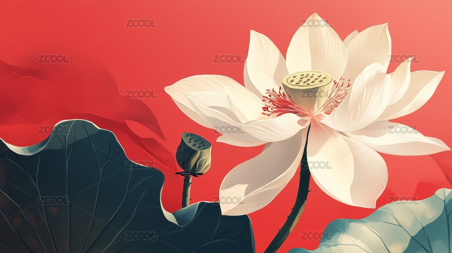 莲花,荷花,红色,背景,植物,艺术,东方,意境,优雅,莲蓬