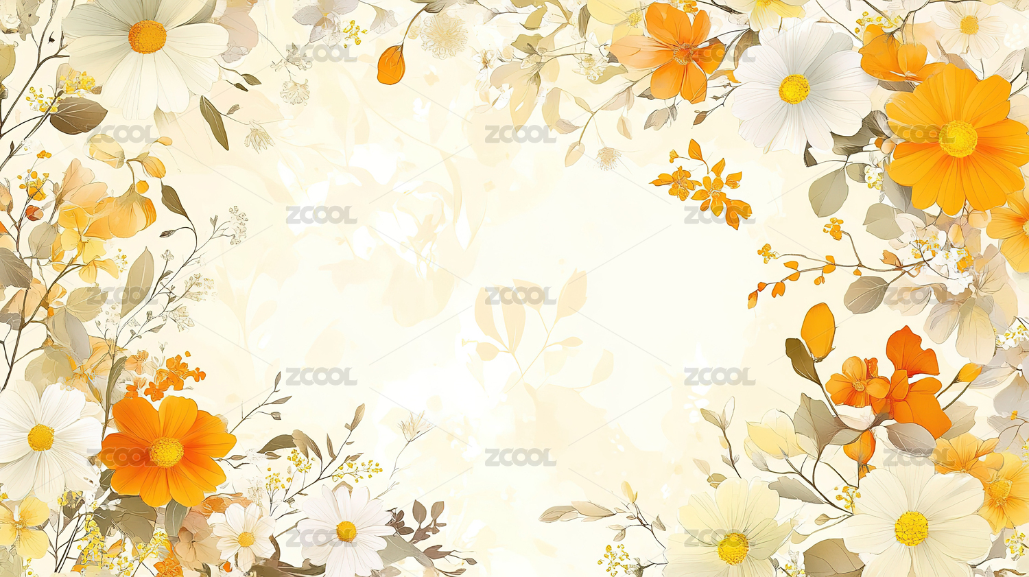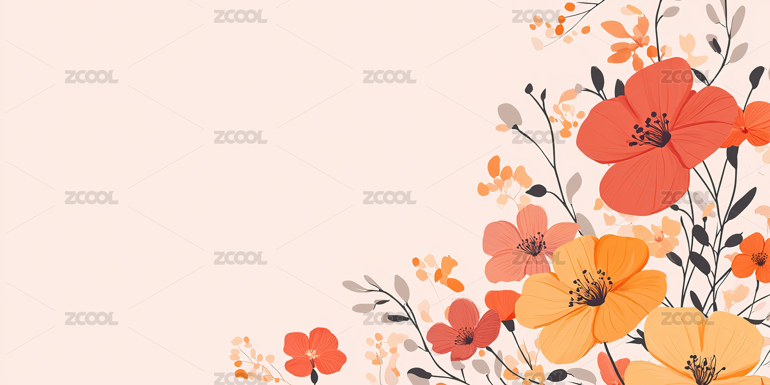 暖色唯美花朵插画背景