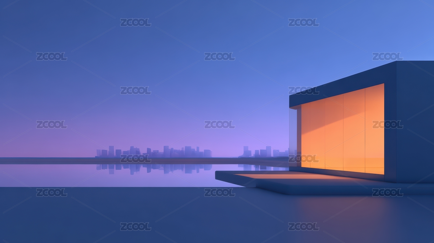 现代建筑在水面上的静谧夜景