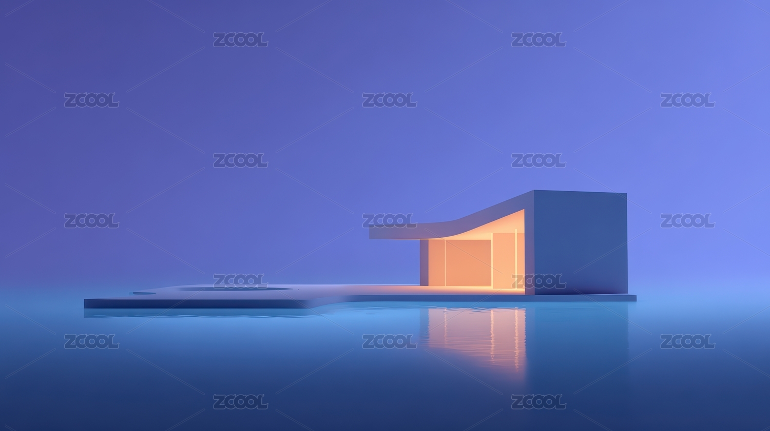 湖中宁静的别墅建筑背景