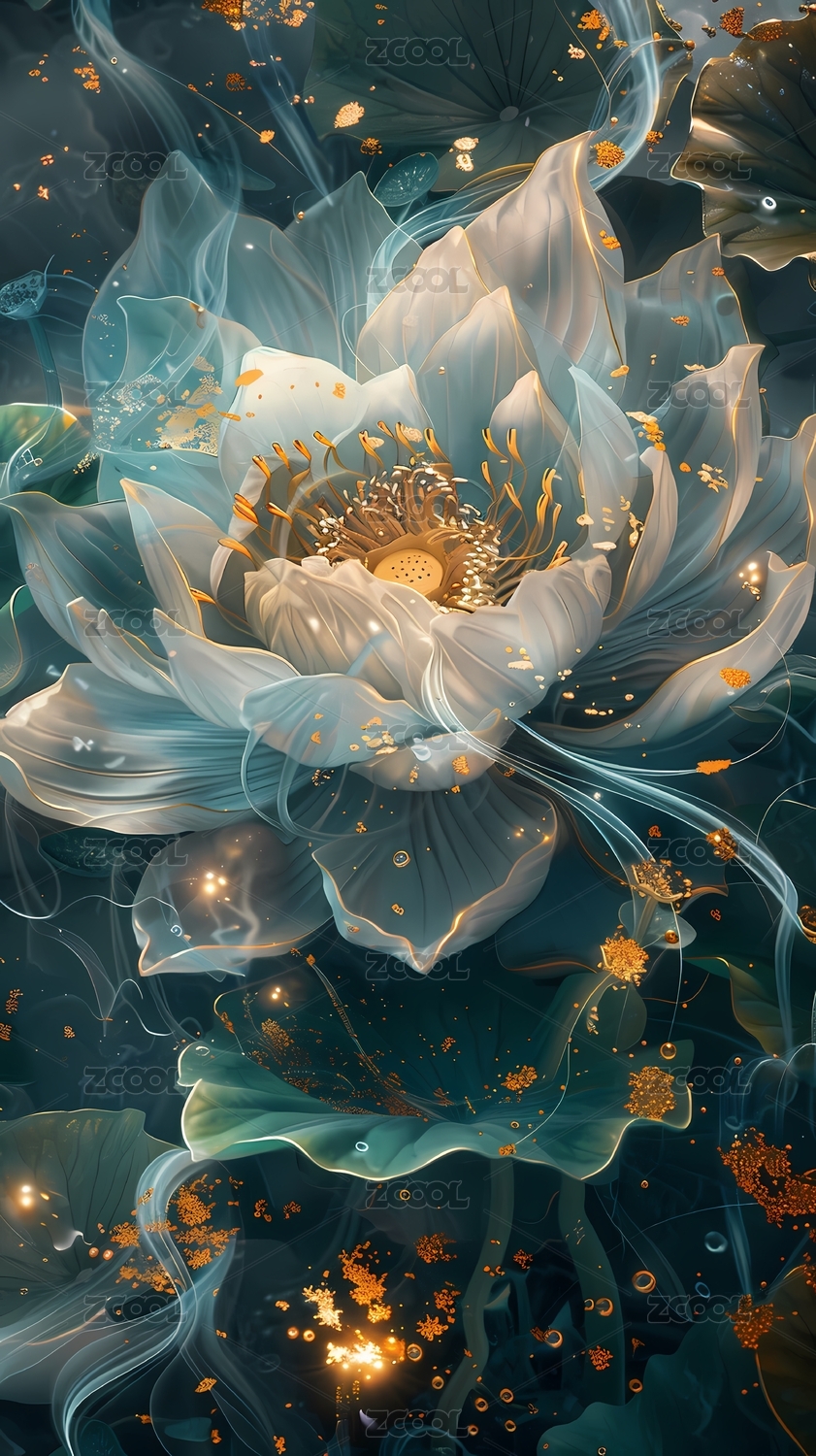 发光荷花在夜空中的奇幻景象