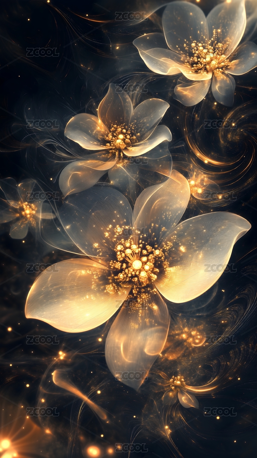 金蕊晶花绽,幻光流韵织夜梦
