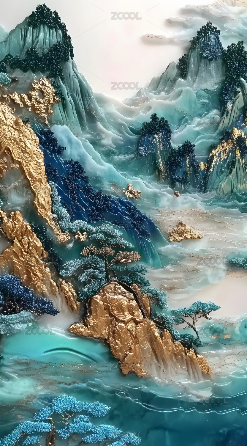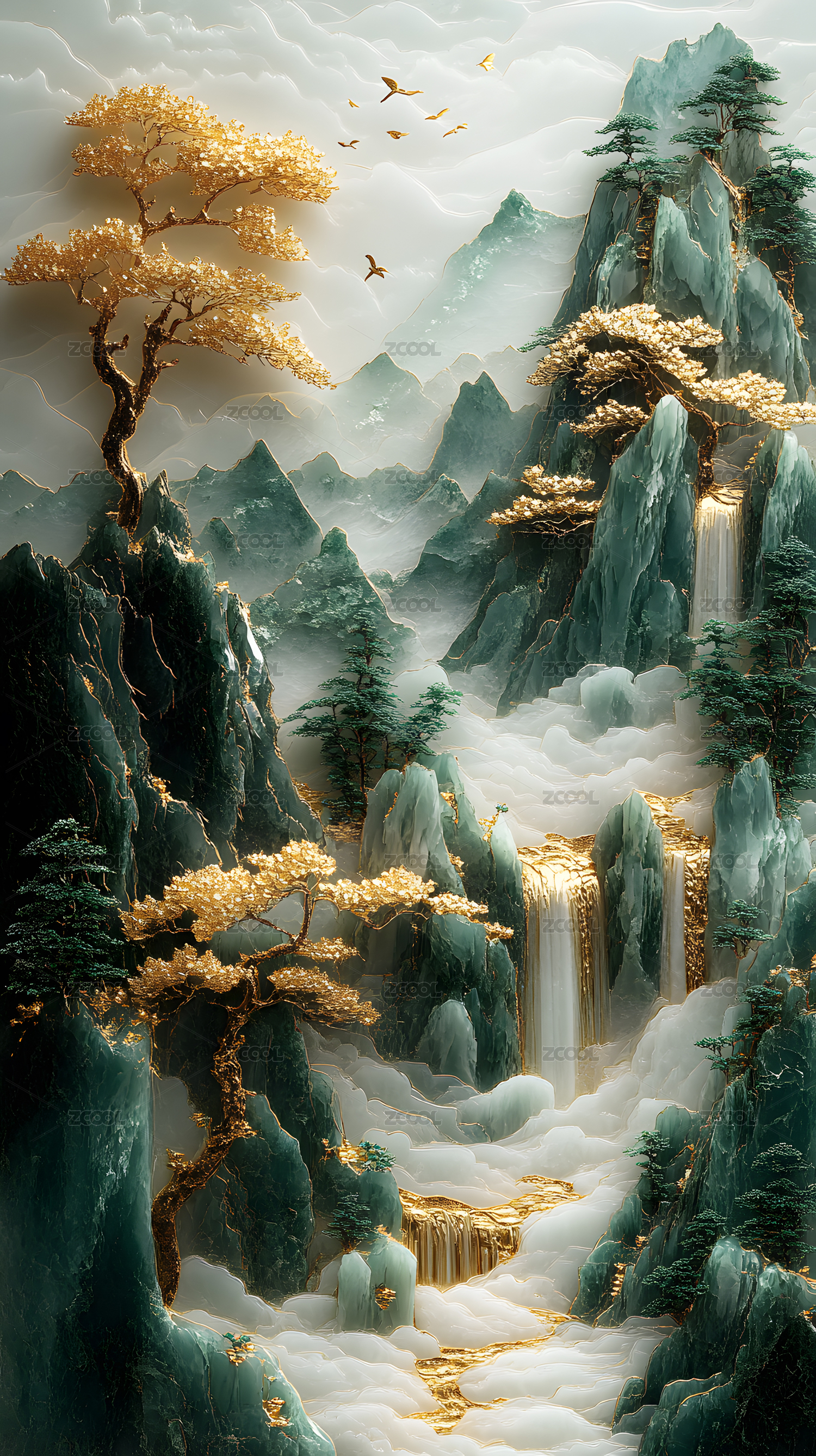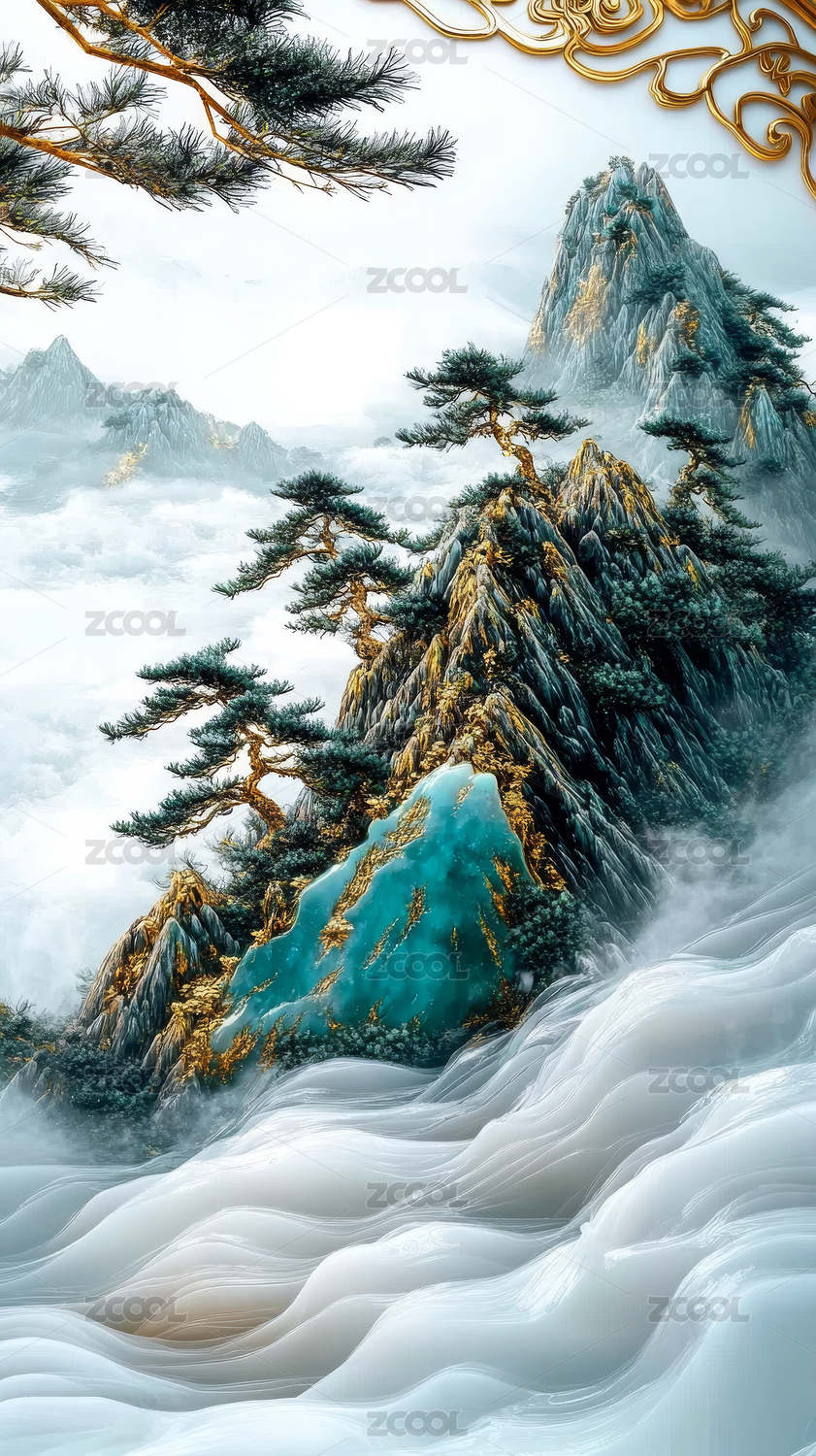 中国风,山水画,山峰,意境,艺术,云雾,3D,抽象,高山,水彩