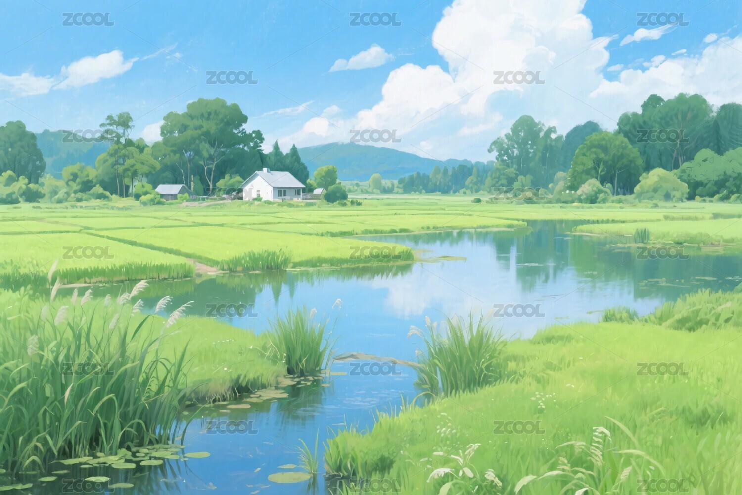 山村,田野,农舍,青山,绿水,乡村,景色,田园,草地,房屋