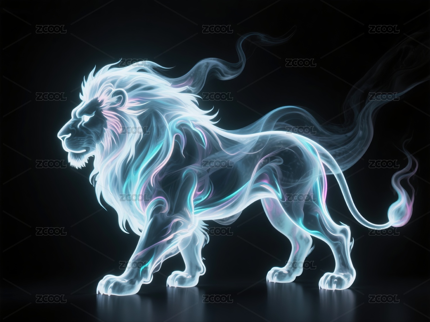 蓝色,灵动,艺术,荧光,梦幻,创意,视觉,科技,自然,狮子