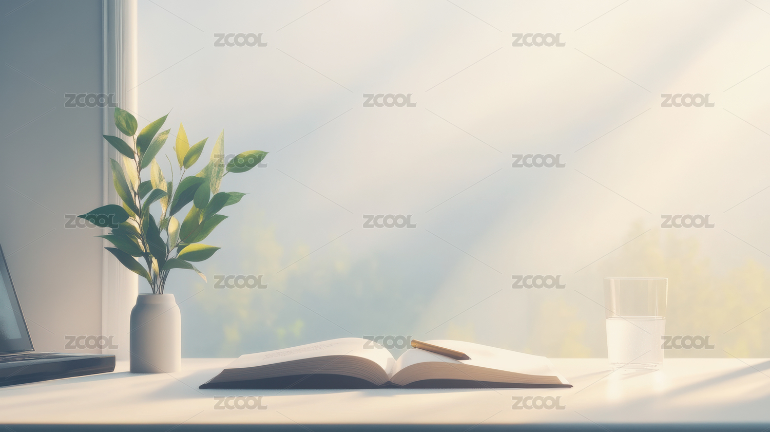 窗边摊开的书本与热茶