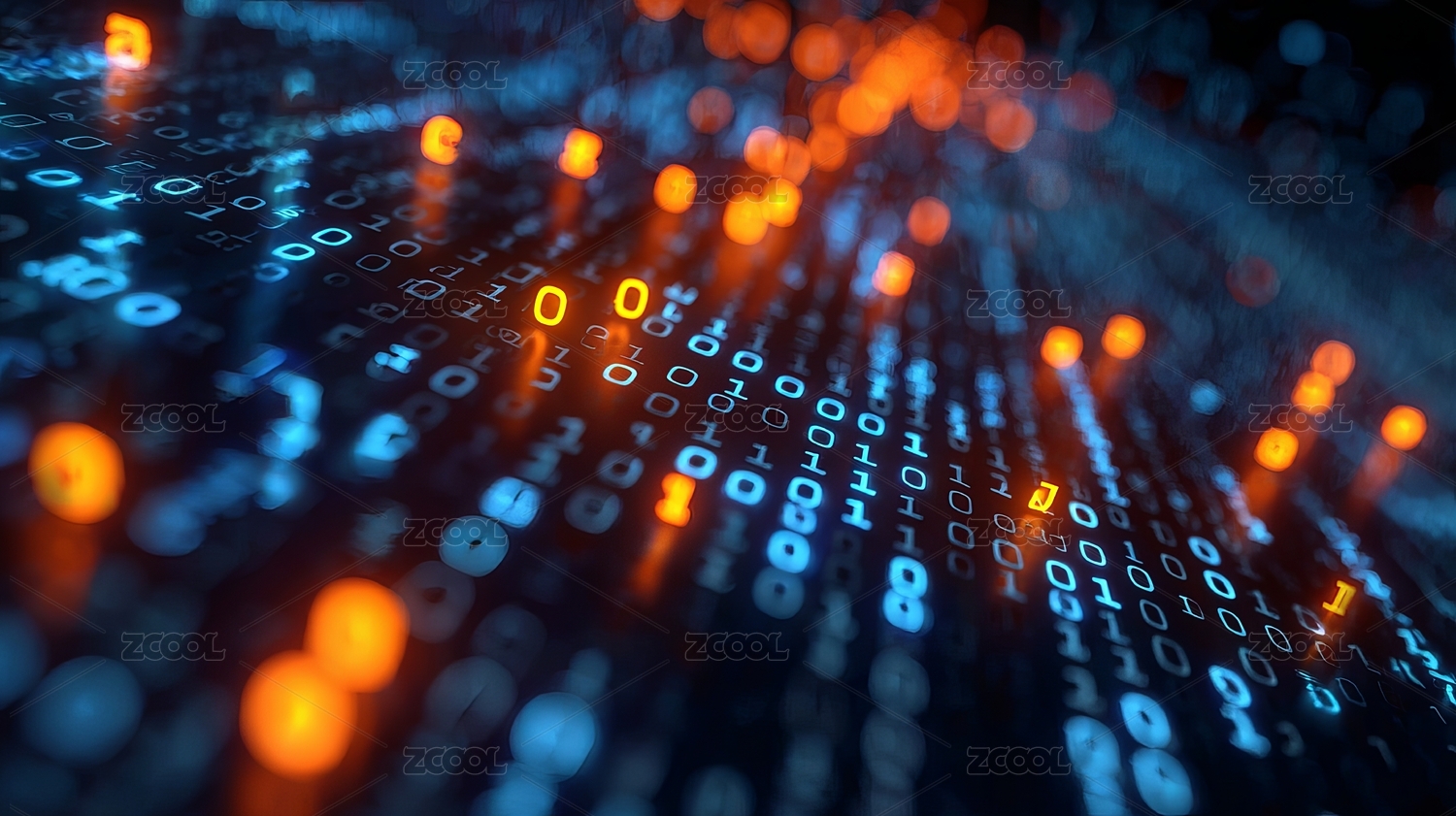 二进制代码与光点交织展现科技感