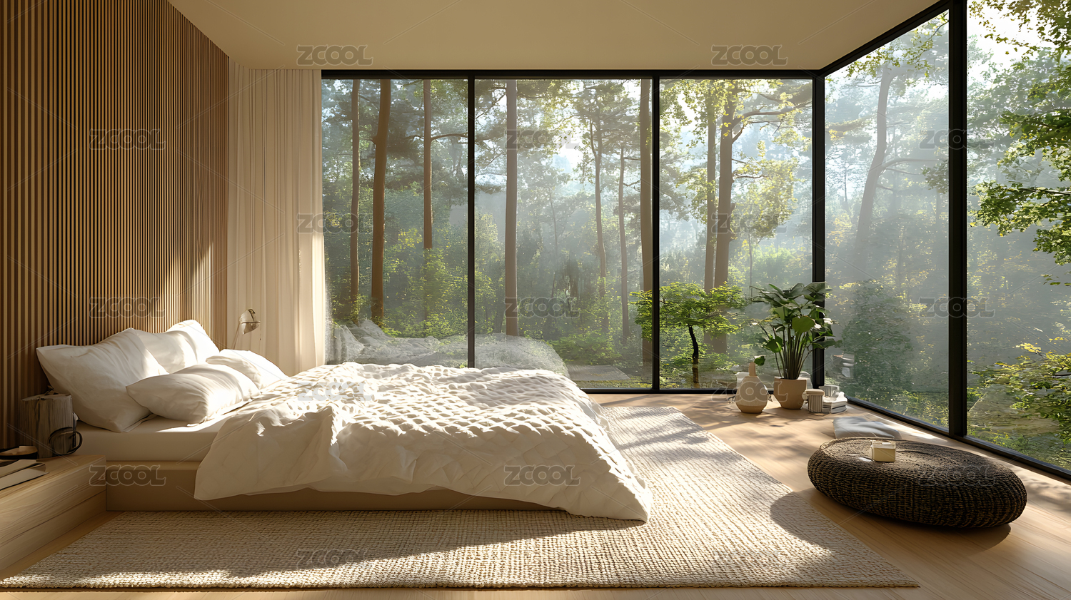 客厅,沙发,绿植,盆栽,阳光,落地窗,木地板,米色,简约,家居