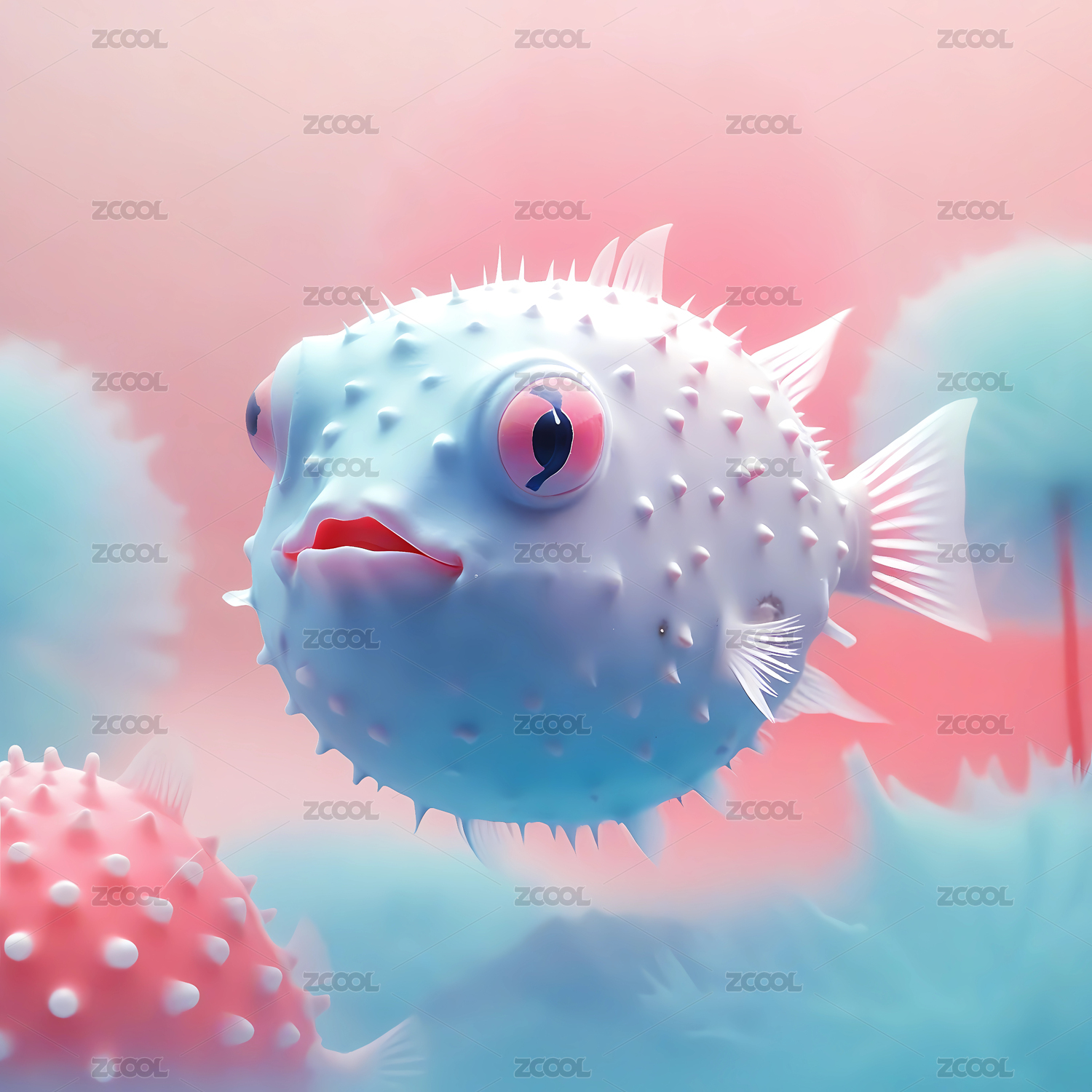 3D渲染的河豚鱼插画