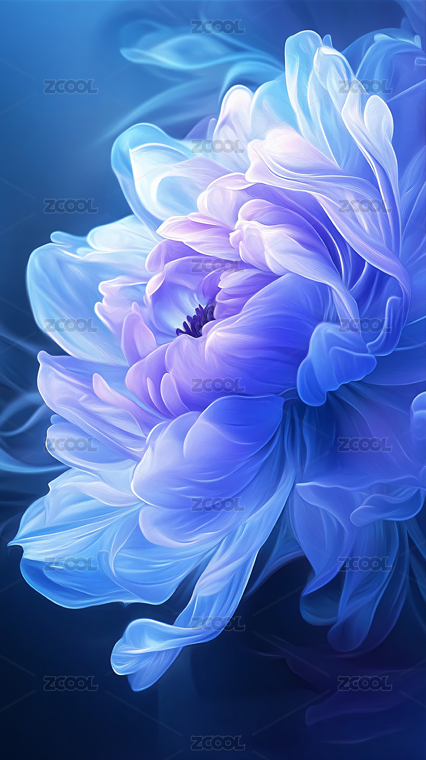粉蓝莲影轻绽,逸韵漫溢柔雅间