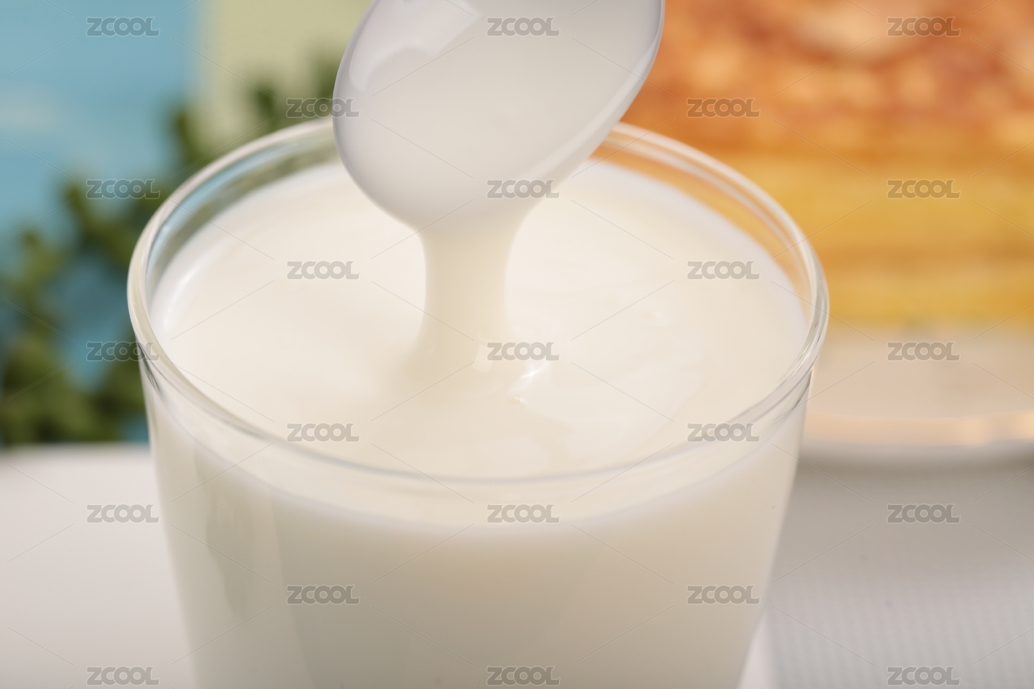 勺盛酸奶特写蓝色莫兰迪色系背景