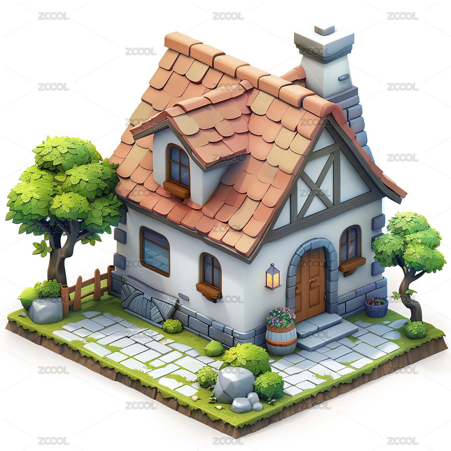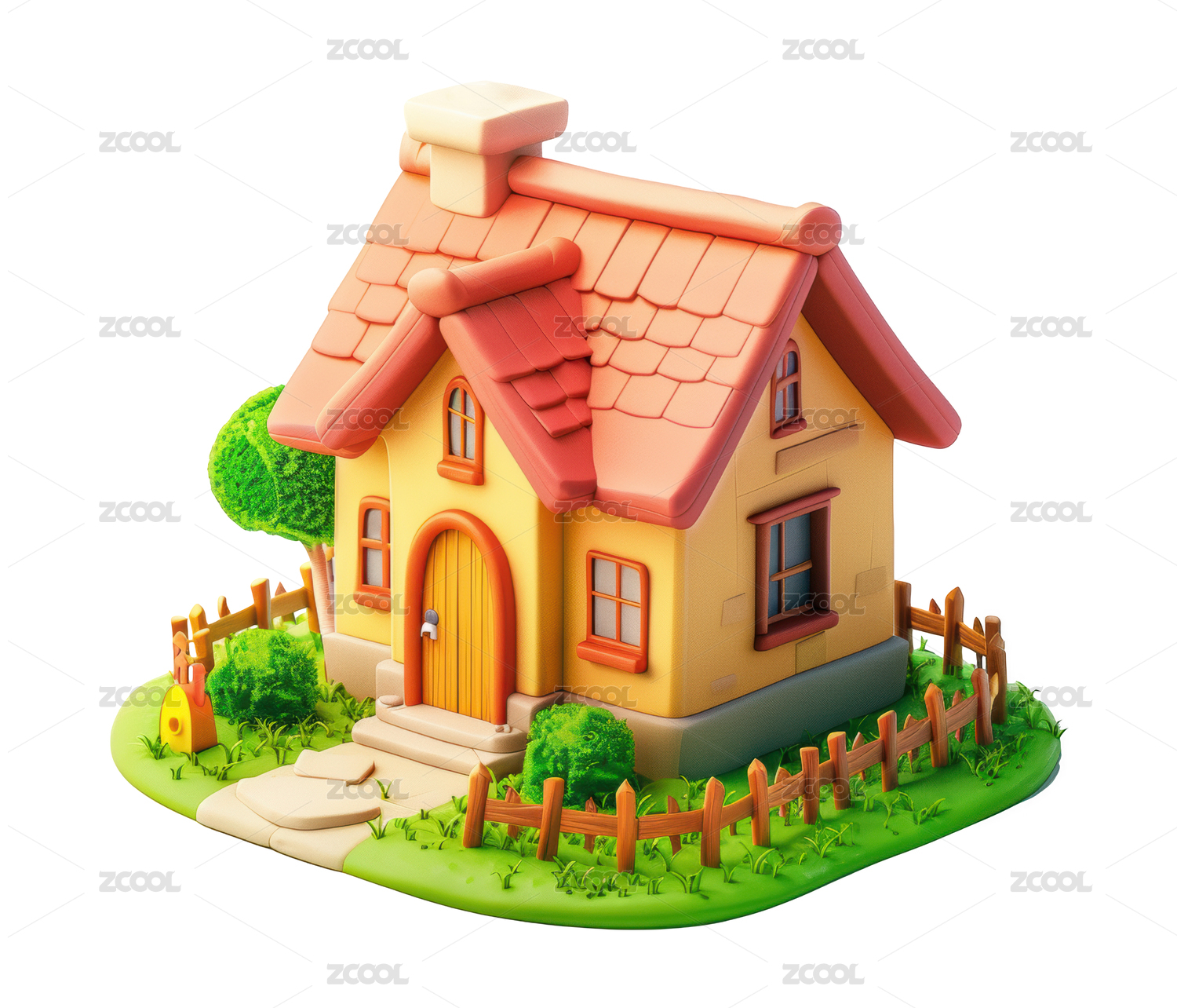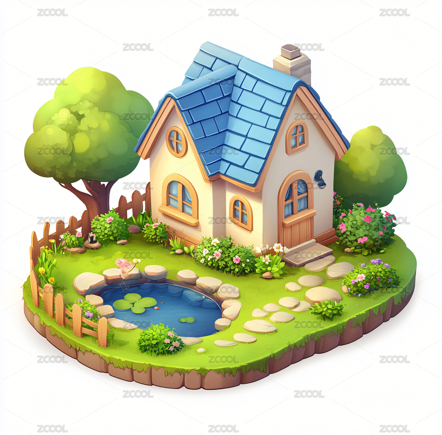 卡通,小屋,插画,可爱,房屋,建筑,木门,窗户,树木,庭院