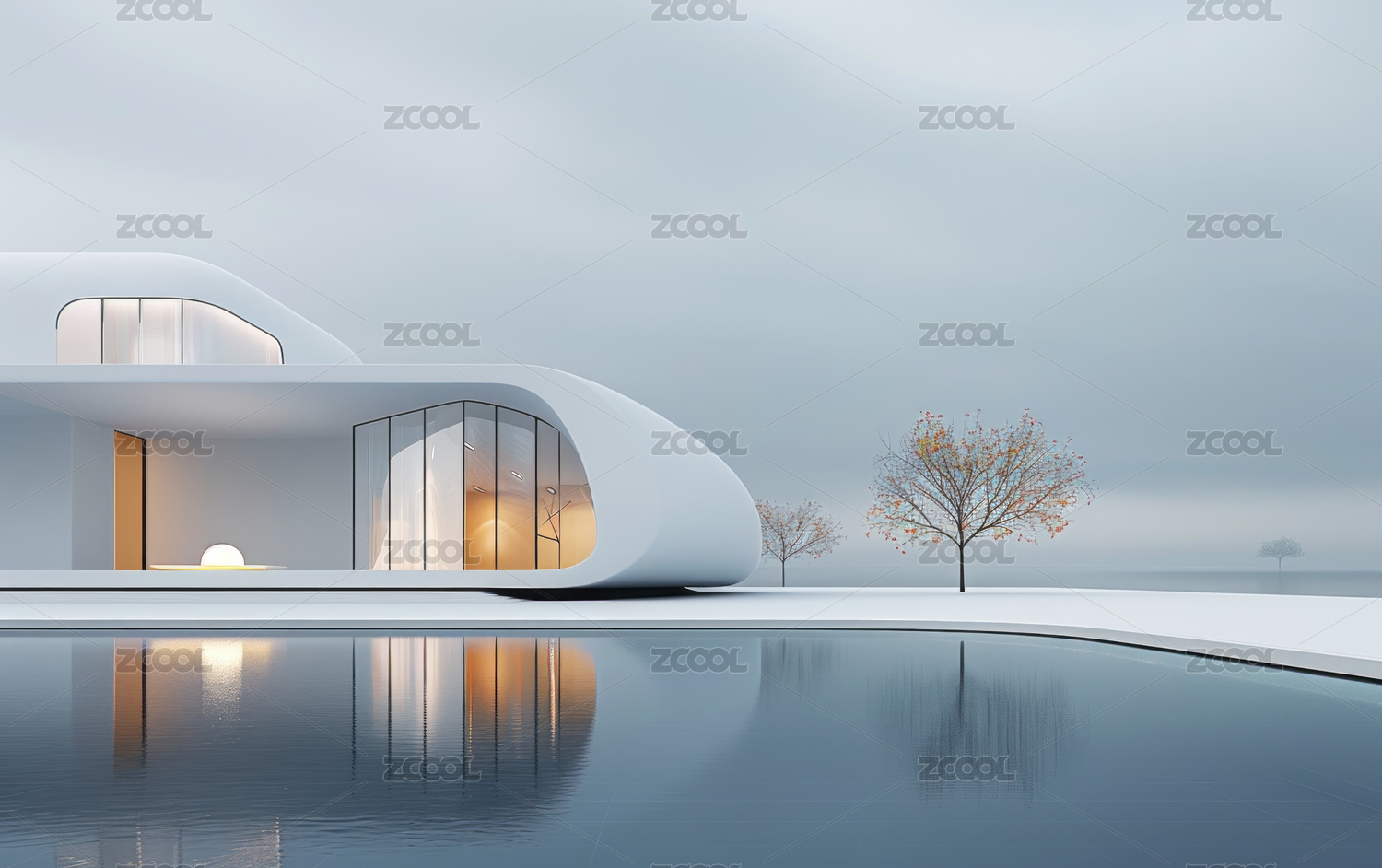 现代建筑室外设计酒店餐厅白色简约风格北欧