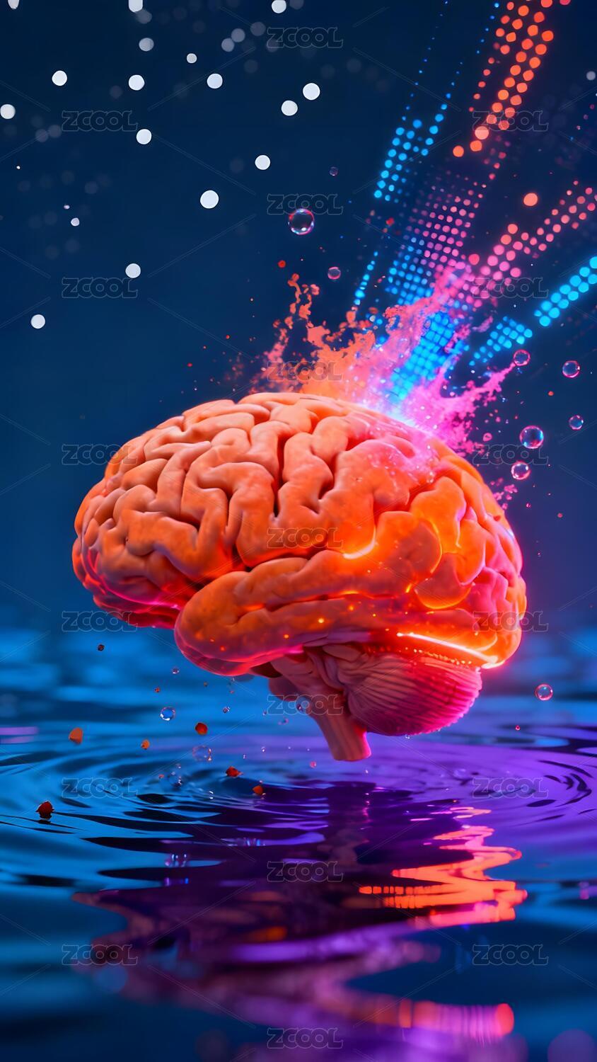 发光大脑在水中反射